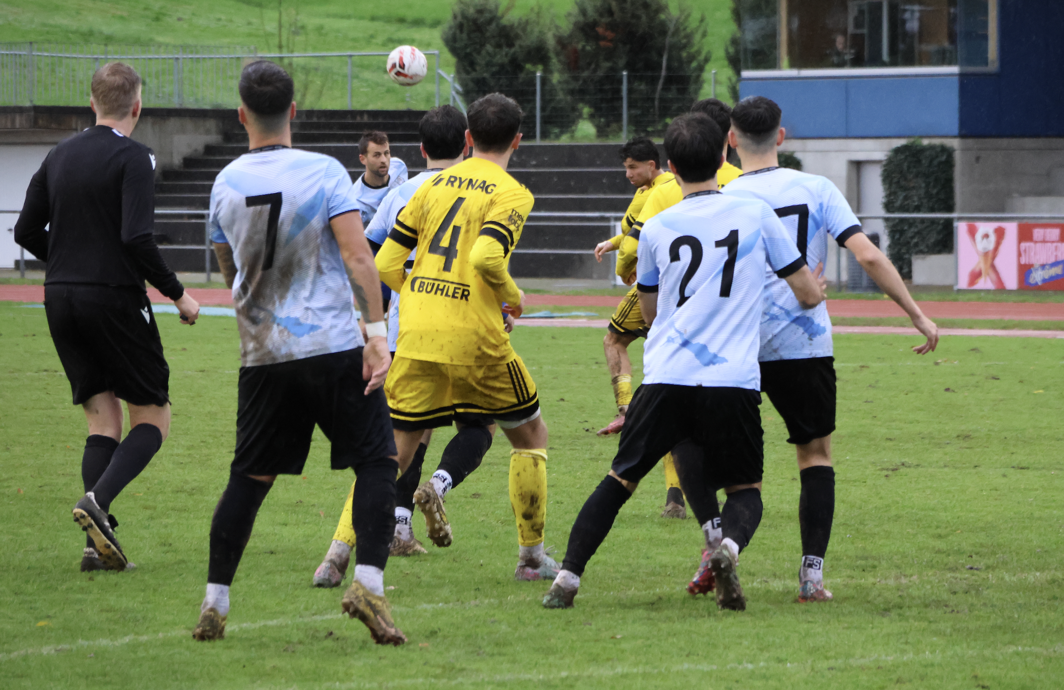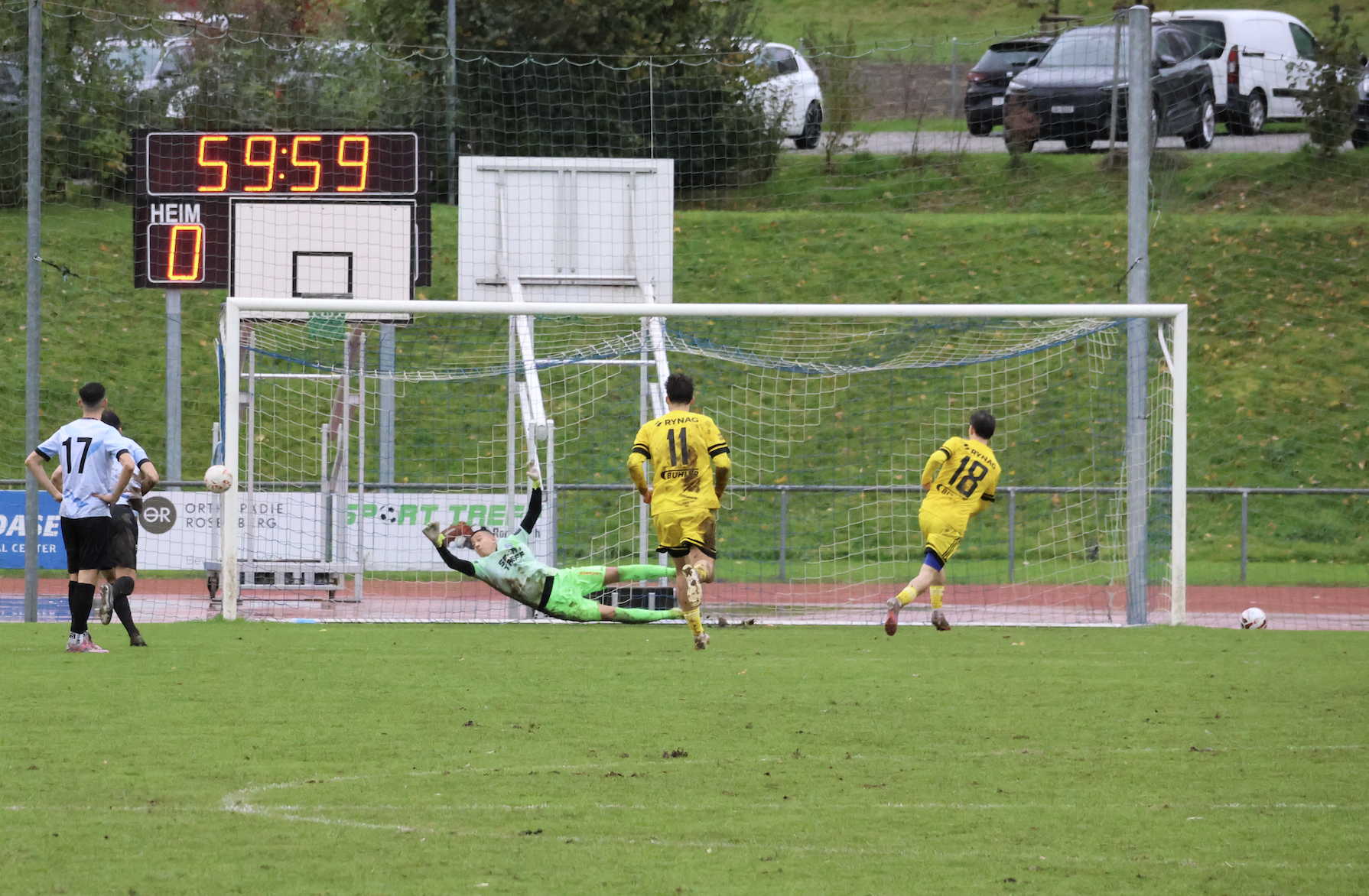 Es dauerte bis zur 40. Minute, bis das Kellen-Team erhöhte Gefahr vor dem Gästetor aufbrachte. Nach der dritten Ecke in Folge, war es ausgerechnet der bisher auffälligste Stürmer der Einheimischen, Sinan Oezcelik, welcher den Ball aus fünf Meter über das Tor hämmerte. Auf der Gegenseite führte ein viel zu kurz gespielter Rückpass von Jan Schultes zu höchster Gefahr. Der ausgezeichnete Jordi Forster blieb im eins gegen eins mit Samuel Weber der Sieger. Bereits in der dritten Minute der Nachspielzeit ereignete sich noch Kurioseres. Jordi Forster war weit aus dem Tor geeilt und wollte den allein zusprintenden Fabio Moser abdrängen. Als die einheimischen Fans bereits mit dem Schlimmsten rechneten, rutschten beide Spieler ohne grossen Körperkontakt auf dem glitschigen Acker aus…