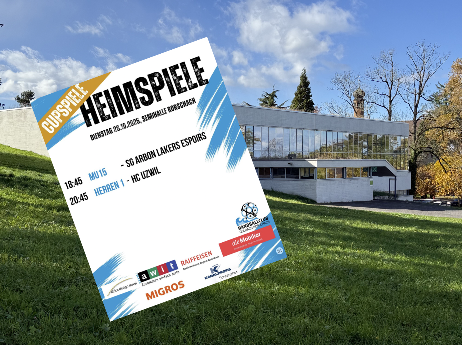 HC GoRo: Heute zwei Cupspiele in der SemihalleThemen:HC GoRo 28. Oktober 2025 - 13:55Um 18:45 Uhr spielen die U15-Junioren gegen die SG Arbon Lakers Espoirs und um 20:45 Uhr empfängt das Herren 1 den HC Uzwil. Die Resultate werden morgen nachgereicht.Teilen mit: Einen Link per E-Mail an einen Freund senden (Wird in neuem Fenster geöffnet) E-Mail Drucken (Wird in neuem Fenster geöffnet) Drucken Auf Facebook teilen (Wird in neuem Fenster geöffnet) Facebook Auf X teilen (Wird in neuem Fenster geöffnet) X Auf WhatsApp teilen (Wird in neuem Fenster geöffnet) WhatsApp Gefällt mir:Gefällt mir Wird geladen …Newsletter abonnieren Bitte dieses Feld leer lassenBitte wähle, ob Du über jeden neuen Beitrag sofort oder lieber jeden Morgen gegen 9 Uhr eine Zusammenfassung der neusten Beiträge erhalten möchtest.Liste(n) auswählen: Neues vom Echo (Zusammenfassung) Neues vom Echo (Sofortbenachrichtigung) Dieses Feld wird benötigt.Prüfen Sie Ihren Posteingang und den Spamordner, um Ihr Abonnement zu bestätigen.