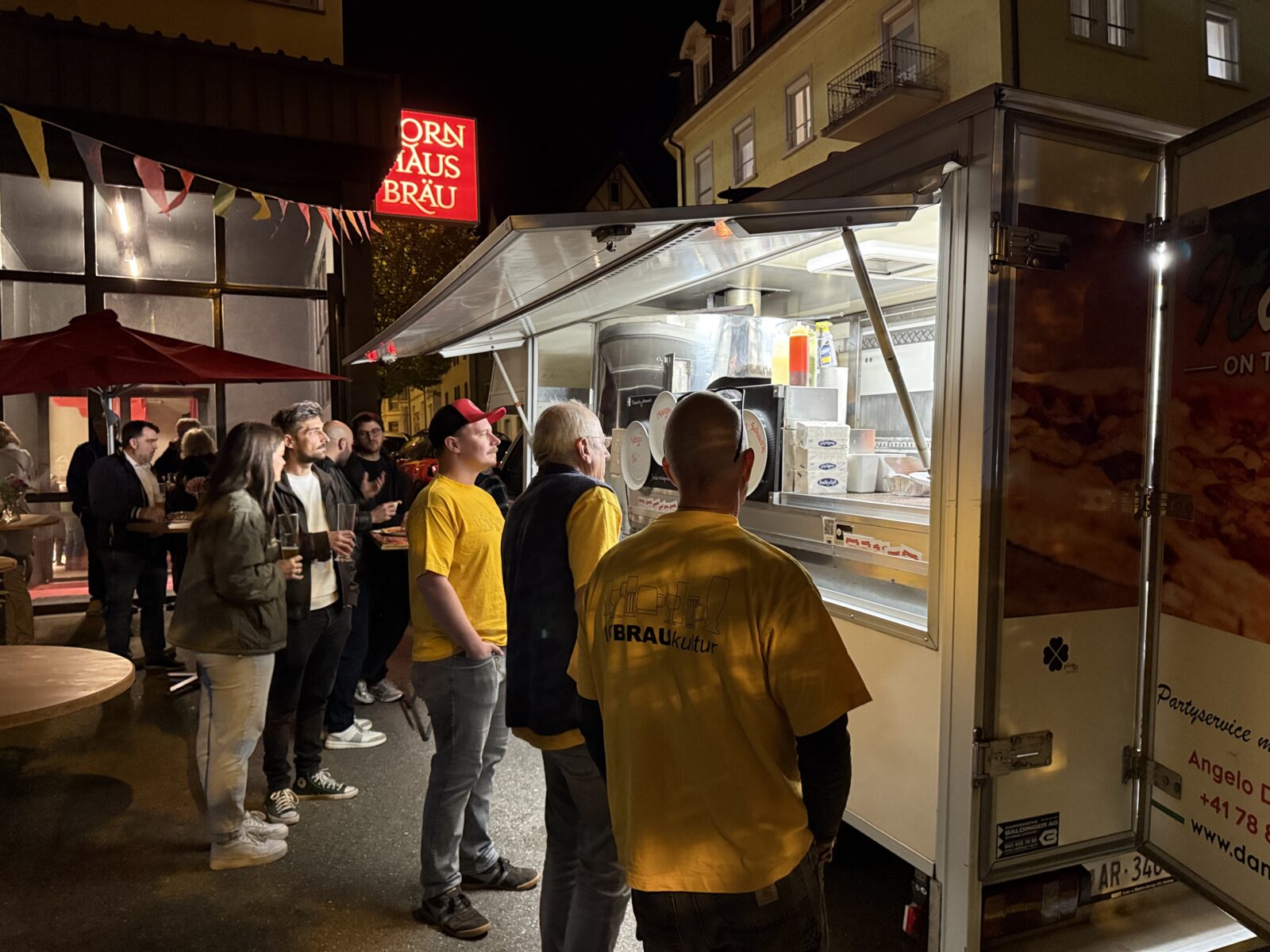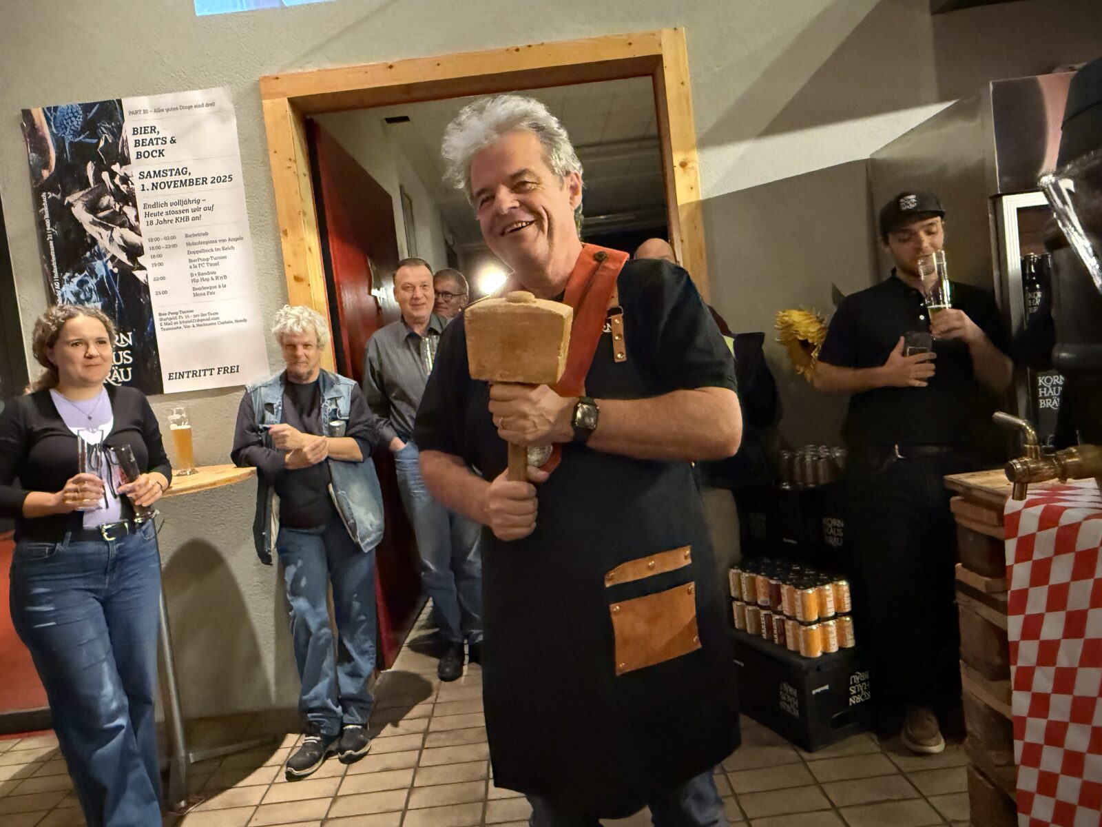 Auch wenn es heisst „Aller guten Dinge sind 3“: anfangen muss das Ganze halt trotzdem. So geschehen gestern mit Feier 1 in der Rorschacher Kornhausbräu. Für einmal stand Brau- und Malzmeister Res Müller im Zentrum, der nicht nur seinen 65. Geburtstag feiern durfte, sondern sich mit einem grossen Fest in die verdiente Pension verabschiedete. Der Generationenwechsel in der Kornhausbräu AG wird dann am Freitag vollzogen. Gestern Abend gab es Holzofenpizza, einen traditionellen Fassanstich, Bierstacheln und ein wunderbares Konzert mit der Tübacher Singer-Songwriterin Lala Cadiz. Hier einige Schnappschüsse vom Fest 1: