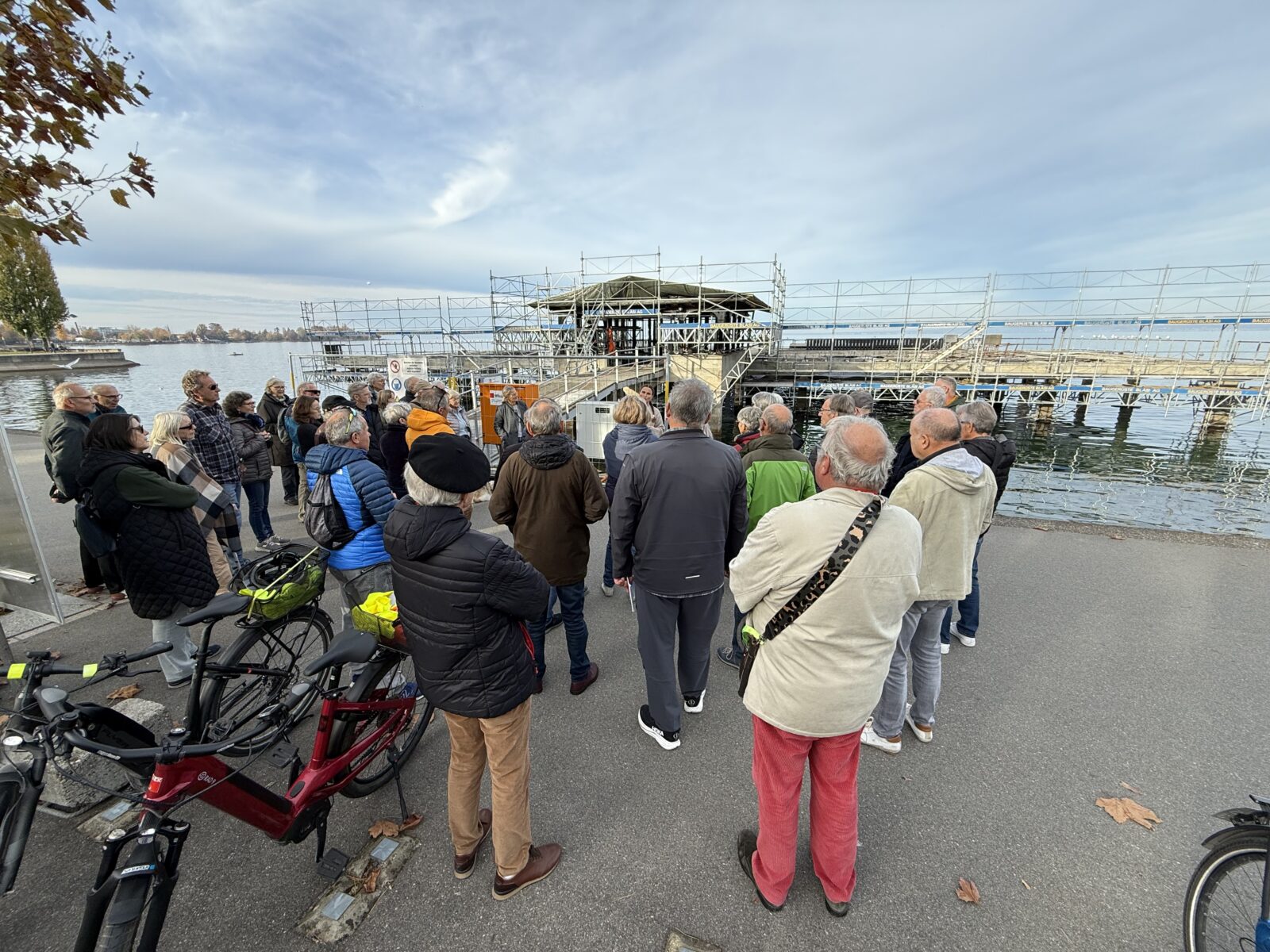 Das Interesse an unserer Badhütte bleibt ungebochen gross. Gestern Nachmittag hat Rowena Schmocker (die eidg. dipl. Bauleiterin arbeitet bei Ladner & Partner in Rheineck und ist aktuell verantwortlich für die Arbeiten rund um die Badhütte) bei schönem Herbstwetter rund 60 Personen zu einem weiteren Infoanlass vor Ort begrüssen können. Das Wichtigste vorweg: Eine erste Kostenschätzung wird am nächsten Stadtapéro am Dienstag, 25. November 2025 präsentiert. Dann werden wir sehen, in welche Richtung sich das Ganze bewegt.