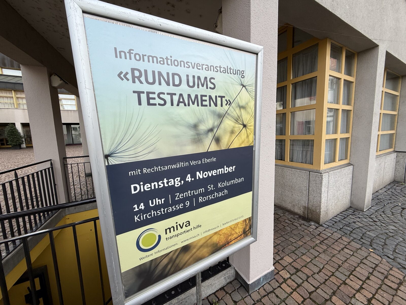 Der Eintritt ist frei. Die Infoveranstaltung findet heute Dienstag, den 4. November 2025 um 14 Uhr im Zentrum St. Kolumban in Rorschach statt. (Text/Flyer: pd miva ap)