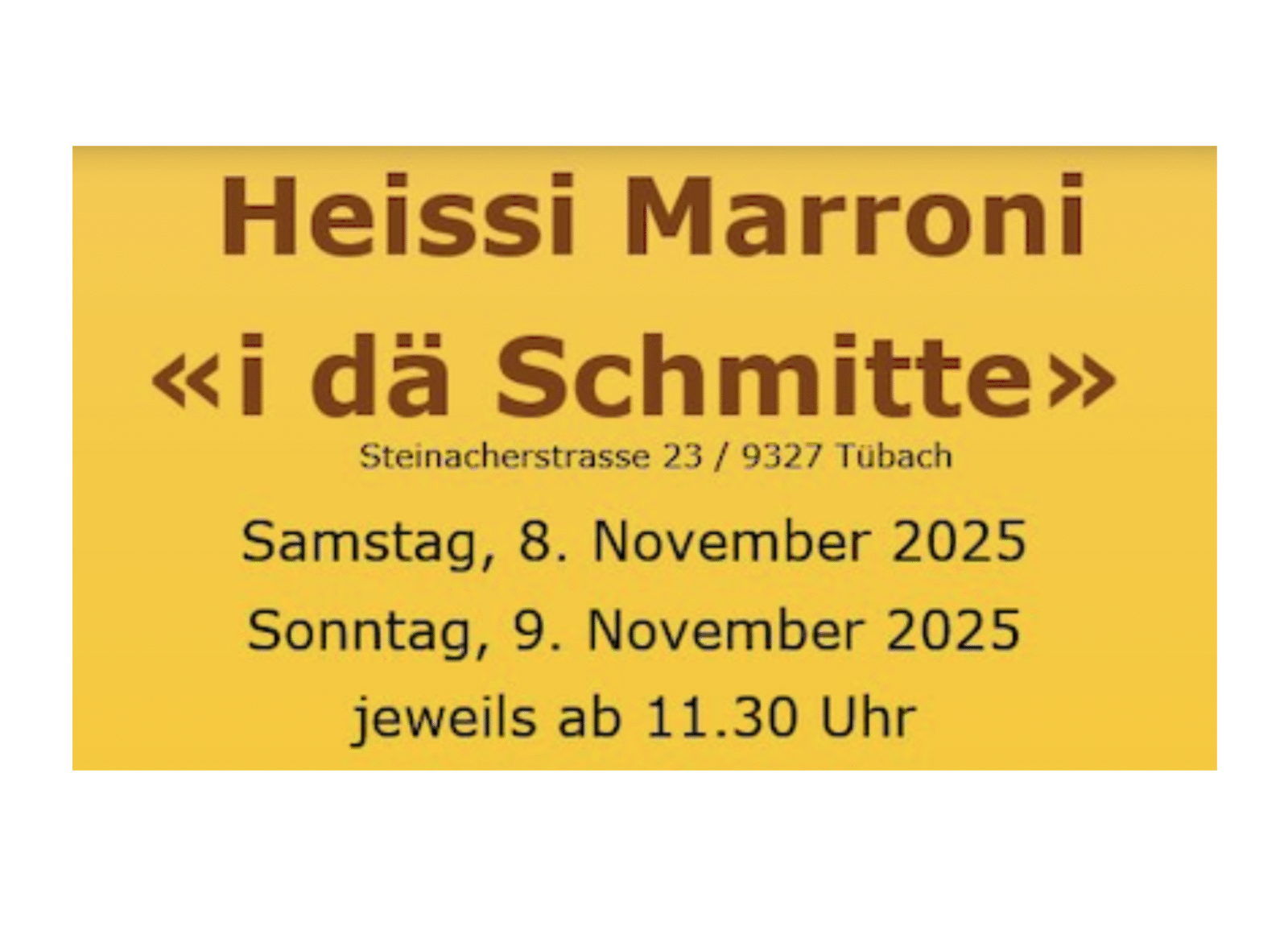 Das passiert am kommenden Wochenende jeweils ab 11.30 Uhr an der Steinacherstrasse 7 in Tübach. Details findet man auf dem Flyer unten.