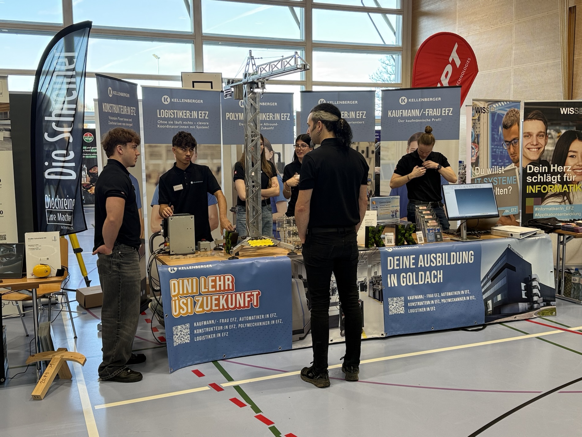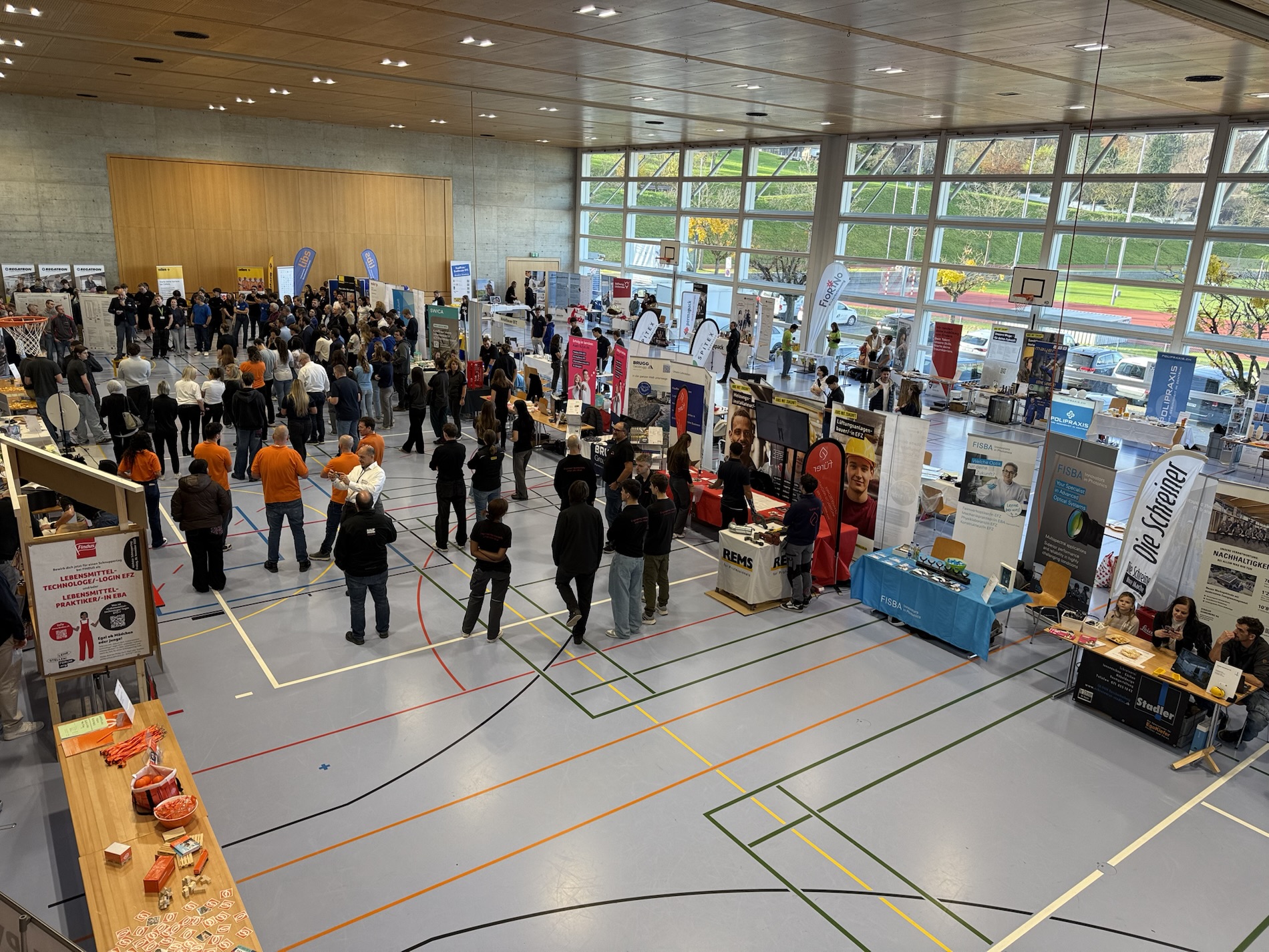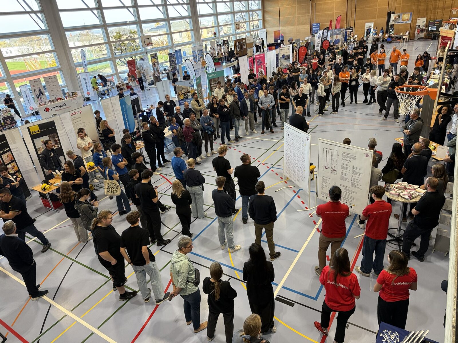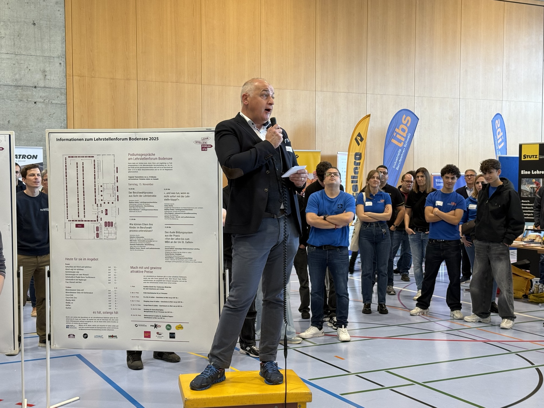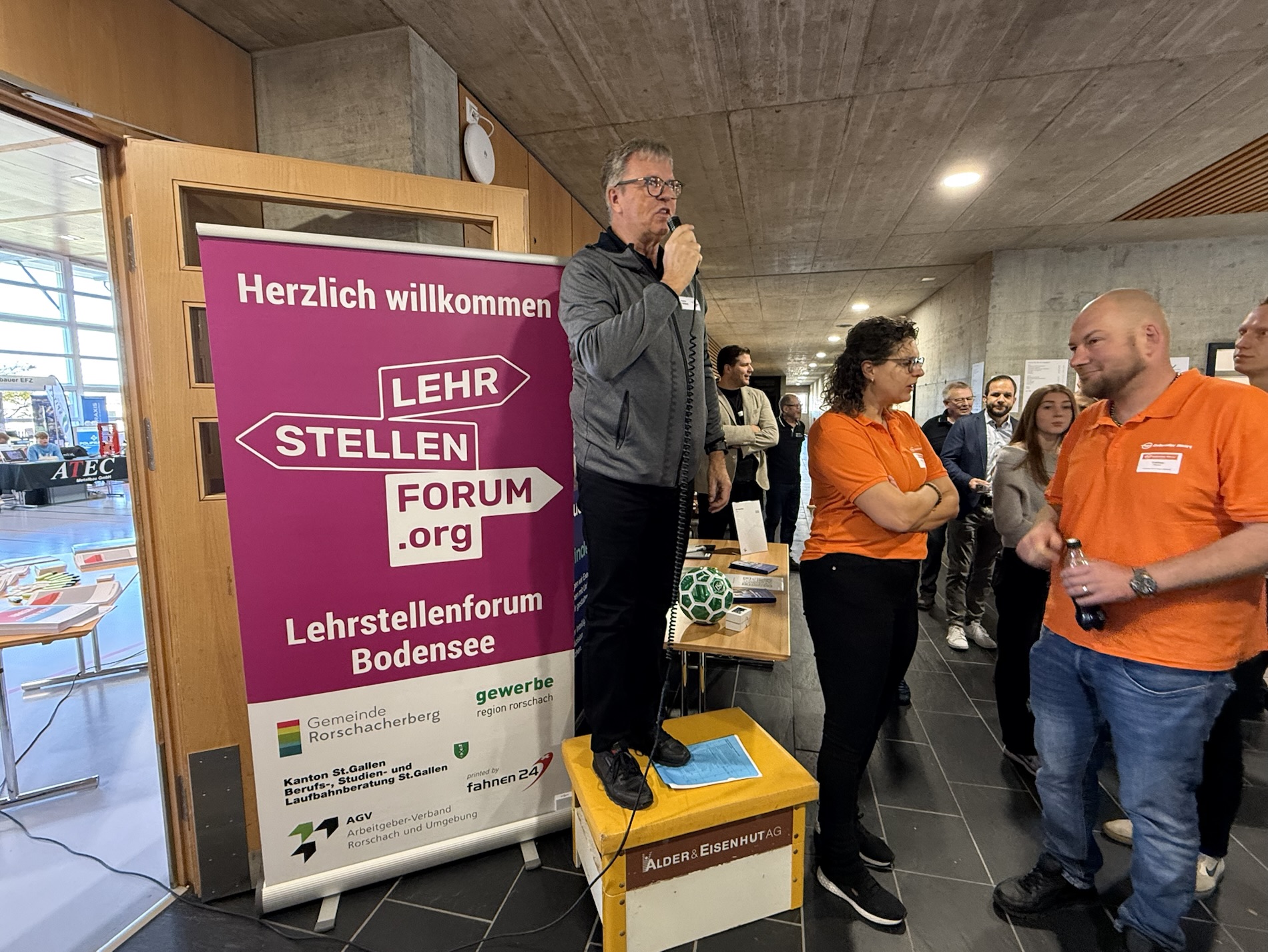 Seit 10 Uhr ist die Mehrzweckhalle in Rorschacherberg Schauplatz des diesjährigen Lehrstellenforums. Nach der Durchführung von bereits mehreren äusserst erfolgreichen Lehrstellenbörsen in St. Gallen wird dieses Jahr das dritte Lehrstellenforum Bodensee in Form einer Tischmesse durchgeführt. Damit wird einen Networking-Anlass zwischen Lehrbetrieben, Berufsbildnern, Lehrlingen und Schülern sehr erfolgreich umgesetzt. Vor Ort sind 66 Aussteller, die 87 Berufe anbieten und insgesamt 504 offene Lehrstellen anbieten. Das Ganze dauert noch bis 15 Uhr.