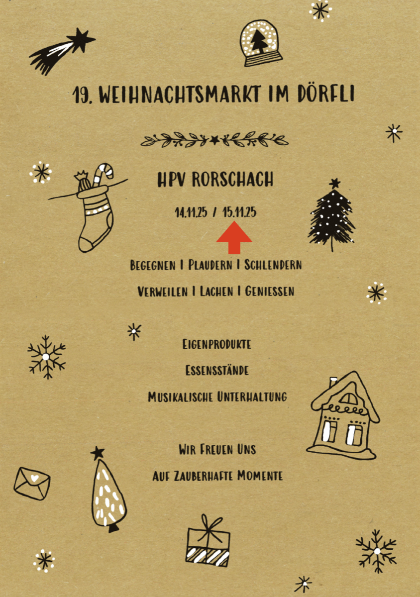 Der Markt im HPV Dörfli an der Franklinstrasse 34 in Rorschach ist von 16 bis 20 Uhr geöffnet. Mehr Infos dazu findet man auch hier. (Bild/Plakat: pd hpv)