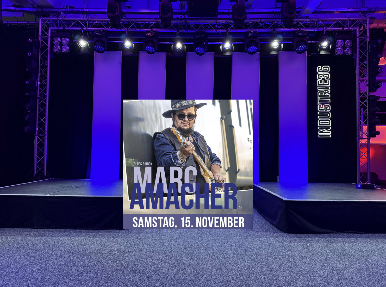 Heute Samstag, 15. November 2025, ab 20 Uhr auf der Bühne in der Kulturfabrik INDUSTRIE36 in Rorschach: Marc Amacher