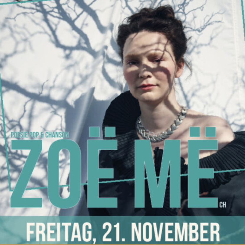 Manchmal liegt ihre Melancholie wie Tautropfen im Morgenlicht, manchmal spiegelt sie sich im Neonleuchten der Stadt – Zoë Më [zoeme] ist eine 1,80 Meter grosse kleine Fee mit zwei Herzen in ihrer Brust. Sie singt auf Deutsch und Französisch, macht Poesie-Pop und Chanson und baut musikalische Brücken zwischen Sprach- und Kulturgrenzen. 2024 wurde sie mit den Gütesiegeln «SRF 3 Best Talent» sowie «RTS Artiste Radar» ausgezeichnet. 2025 wurde sie – bei 431 Bewerbungen – als Vertreterin der Schweiz beim Eurovision Song Contest angekündigt, bei dem ihr Song «Voyage» bei der Jury auf den 2. Platz kam und in der Gesamtwertung auf Platz 10 landete. Mehr Infos zu diesem Gig findet man hier.