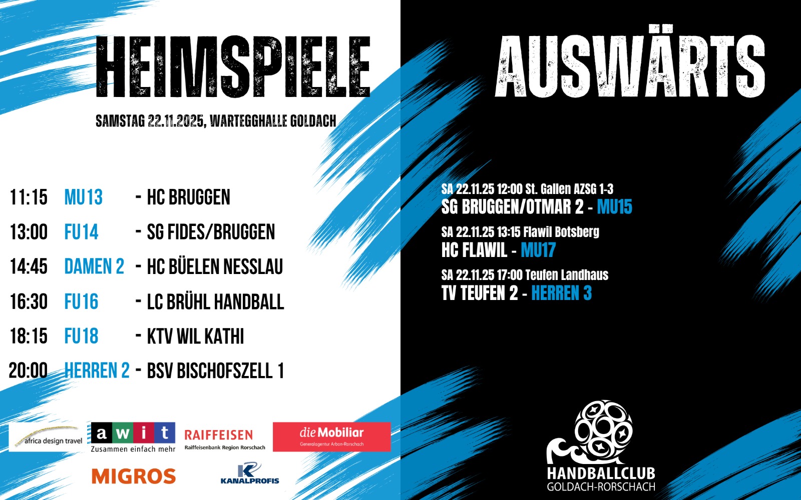 Die FU18-Mannschaft von GoRo hat am letzten Sonntag einen bedeutenden Schritt Richtung Aufstieg gemacht. Trotz schwieriger Bedingungen – Sonntagnachmittag, eine harzfreie Halle und die Bedeutung der Partie – setzte sich das Team auswärts mit 27:33 durch und verschaffte sich damit eine starke Ausgangslage im Kampf um die vorderen Plätze. Dank des Erfolgs hat sich das Team im Rennen um den Aufstieg weiter von der Konkurrenz abgesetzt. Einzig die Mannschaft aus Wil kann die Tabellenkonstellation noch beeinflussen. Heute steht nun dieses richtungsweisende Direktduell gegen den KTV Wil in der Wartegghalle in Goldach an. Ein Erfolg würde den Weg in die Aufstiegsspiele endgültig ebnen. Anpfiff ist um 18:15 Uhr. Das Team freut sich auf lautstarke Unterstützung der Fans. (Bild: pd hcgoro)
