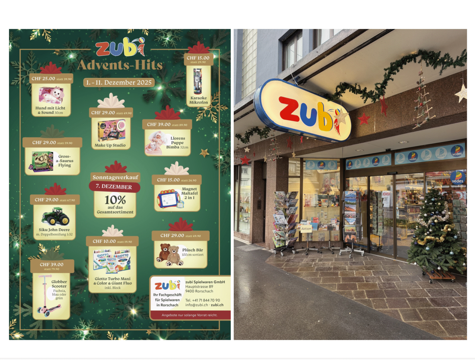 Zubi ist ein Fachgeschäft für Spielwaren und Papeterieartikel in der Stadt am See und überrascht jedes Jahr wieder mit einem breiten Angebot für Weihnachtsgeschenke jeglicher Art. Inegüxle ist angesagt und mehr über Zubi erfährt man auch hier und hier.