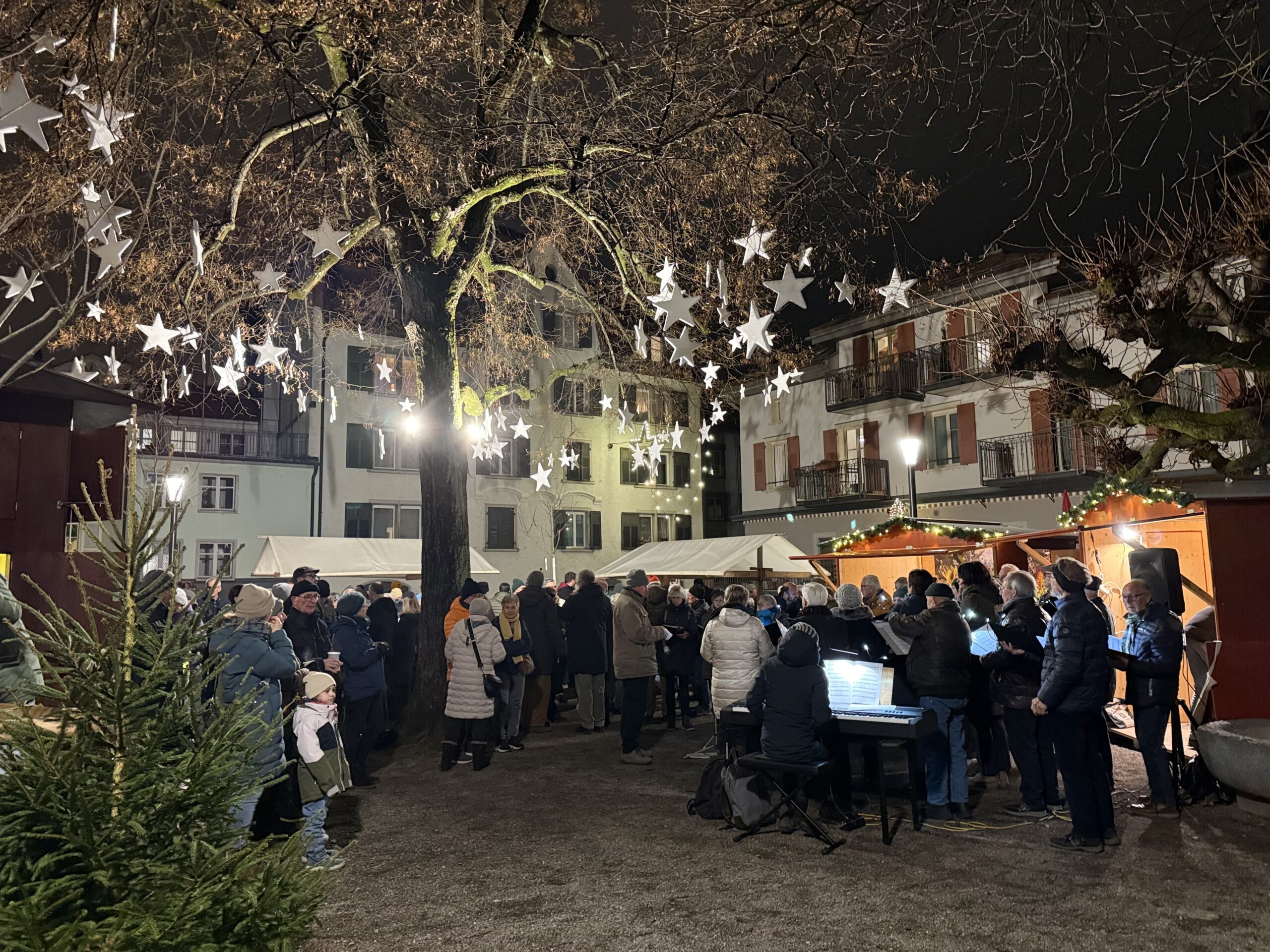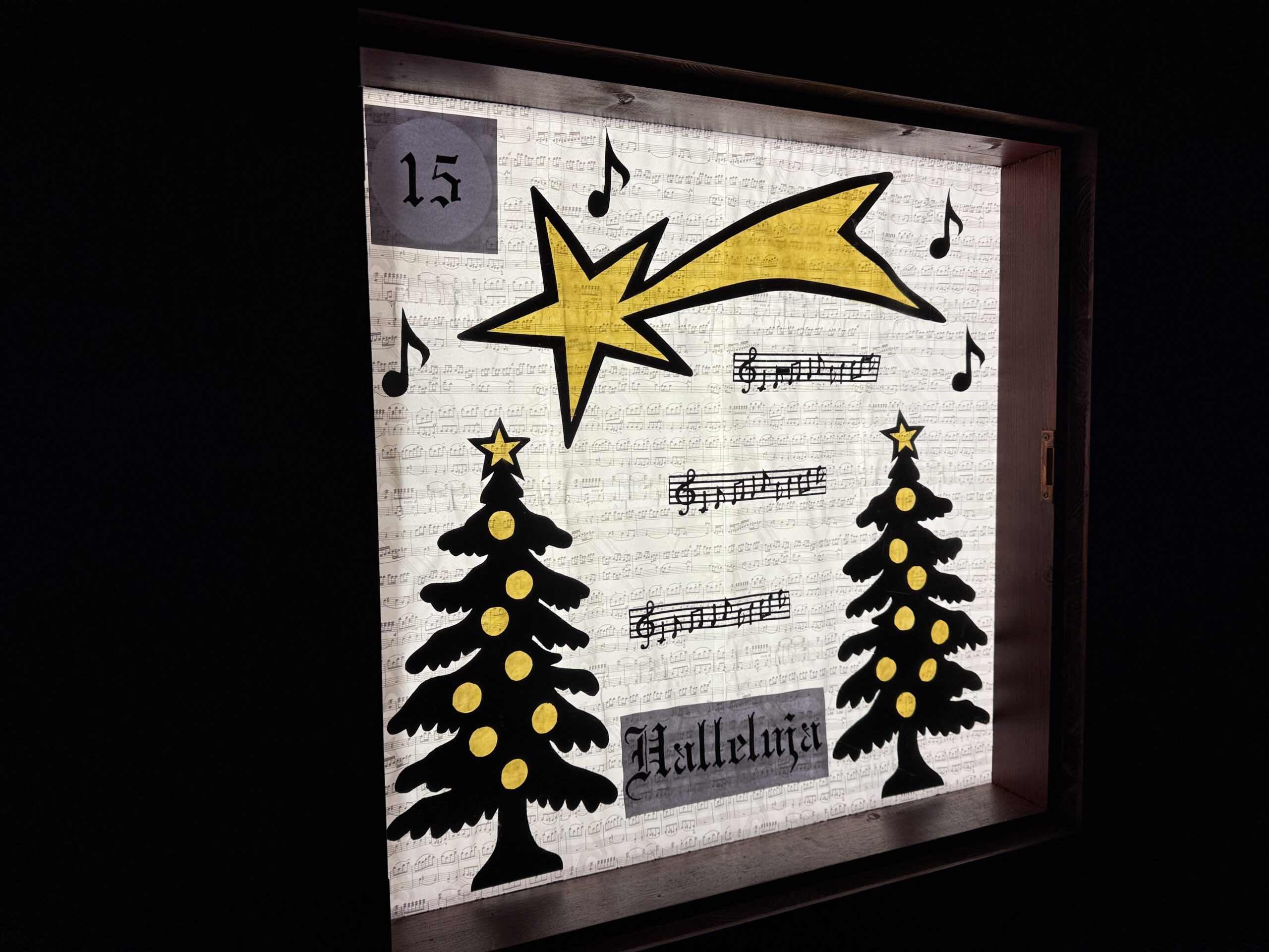 Die InitiantInnen haben gestern zum Sponsoren- und Helferapéro geladen. Die Bäckerei Füger, Rorschach, die Metzgerei Breitenmoser, Rorschacherberg, das Hotel Rebstock, Rorschacherberg sowie das Bio-Schlosshotel Wartegg, Rorschacherberg, waren für die Verpflegung gesorgt. Für die musikalische Bereichung war der GoldaChor aus der Nachbargemeinde besorgt und Mitsängerin Margrit Huber hat das Fenster 15 geschaffen. Dieses ist im Beitragsbild oben zu sehen.inige Schnappschüsse von gestern Abend.