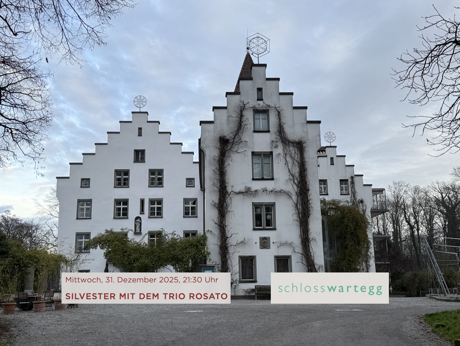 Songs und Arien auf die Jahreswende: Das Trio Rosato mit Roman Staubli (Klavier), Samantha Herzog (Sopran, aus Thal) und Tom Muster (Bariton) hat sein Publikum auf Schloss Wartegg schon mehrfach begeistert. Das inspirierte und nuancierte Trio setzt einen strahlenden, freudvollen Tupfer ans Ende des Jahres. Man muss aber auch zuerst klären, ob es überhaupt noch freie Plätze hat… (Text/Bild: pd wartegg)
