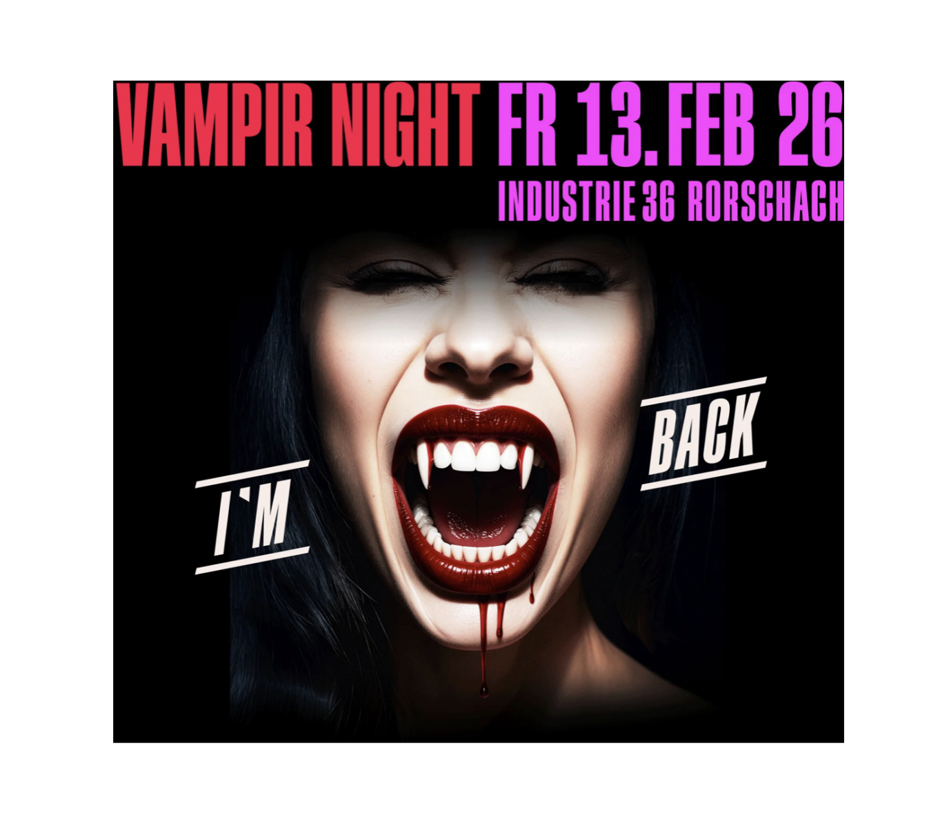 Der Vorverkauf für die Vampir-Night läuft bereits…Themen:KulturKulturfabrikRorschachTreppenhaus 31. Dezember 2025 - 05:15Die Vampire kehren zurück… Bis gegen 400 verkleidete Vampire tanzen am 13. Februar 2026 im Rorschacher Kulturtempel in der Industrie36 zur Live Band „Top4Tea„. Der Vorverkauf hat begonnen. Mehr Infos dazu findet man hier und hier. (Bild: pd)Teilen mit: Einen Link per E-Mail an einen Freund senden (Wird in neuem Fenster geöffnet) E-Mail Drucken (Wird in neuem Fenster geöffnet) Drucken Auf Facebook teilen (Wird in neuem Fenster geöffnet) Facebook Auf X teilen (Wird in neuem Fenster geöffnet) X Auf WhatsApp teilen (Wird in neuem Fenster geöffnet) WhatsApp Gefällt mir:Gefällt mir Wird geladen …Newsletter abonnieren Bitte dieses Feld leer lassenBitte wähle, ob Du über jeden neuen Beitrag sofort oder lieber jeden Morgen gegen 9 Uhr eine Zusammenfassung der neusten Beiträge erhalten möchtest.Liste(n) auswählen: Neues vom Echo (Zusammenfassung) Neues vom Echo (Sofortbenachrichtigung) Dieses Feld wird benötigt.Prüfen Sie Ihren Posteingang und den Spamordner, um Ihr Abonnement zu bestätigen.