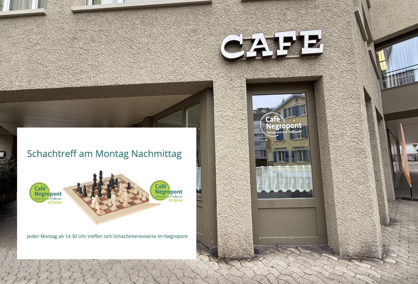 Morgen ist wieder Schachtreff im Negropont RorschachThemen:BeizenKulturRorschach 4. Januar 2026 - 05:20Auch im neuen Jahr jeden Montag ab 14:30 Uhr. Nur hingehen muss man selber…Teilen mit: Einen Link per E-Mail an einen Freund senden (Wird in neuem Fenster geöffnet) E-Mail Drucken (Wird in neuem Fenster geöffnet) Drucken Auf Facebook teilen (Wird in neuem Fenster geöffnet) Facebook Auf X teilen (Wird in neuem Fenster geöffnet) X Auf WhatsApp teilen (Wird in neuem Fenster geöffnet) WhatsApp Gefällt mir:Gefällt mir Wird geladen …Newsletter abonnieren Bitte dieses Feld leer lassenBitte wähle, ob Du über jeden neuen Beitrag sofort oder lieber jeden Morgen gegen 9 Uhr eine Zusammenfassung der neusten Beiträge erhalten möchtest.Liste(n) auswählen: Neues vom Echo (Zusammenfassung) Neues vom Echo (Sofortbenachrichtigung) Dieses Feld wird benötigt.Prüfen Sie Ihren Posteingang und den Spamordner, um Ihr Abonnement zu bestätigen.
