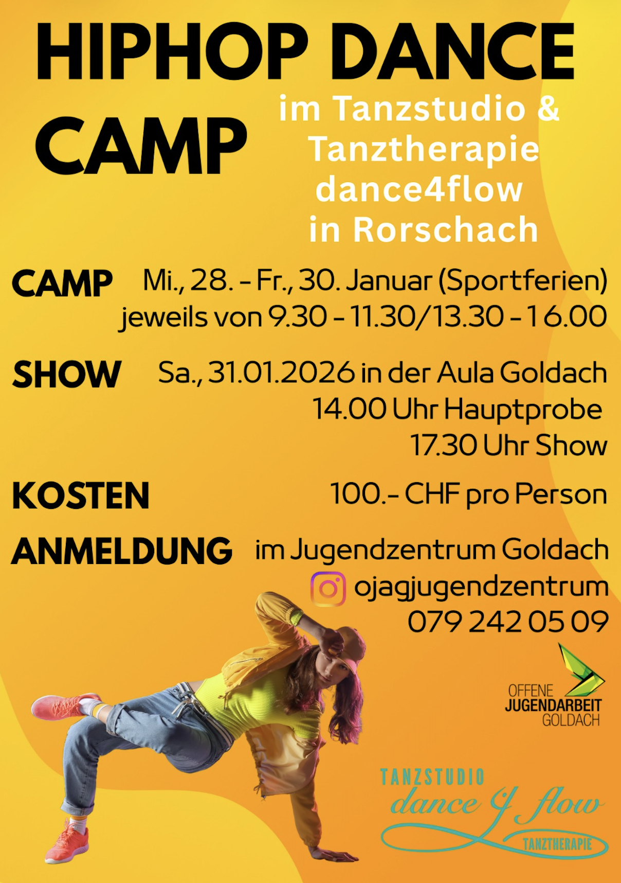 Die offene Jugendarbeit Goldach organisiert in Kooperation mit der Tanzpädagogin Sandy Gerber in den Sportferien ein Dance Camp für Kinder und Jugendliche.