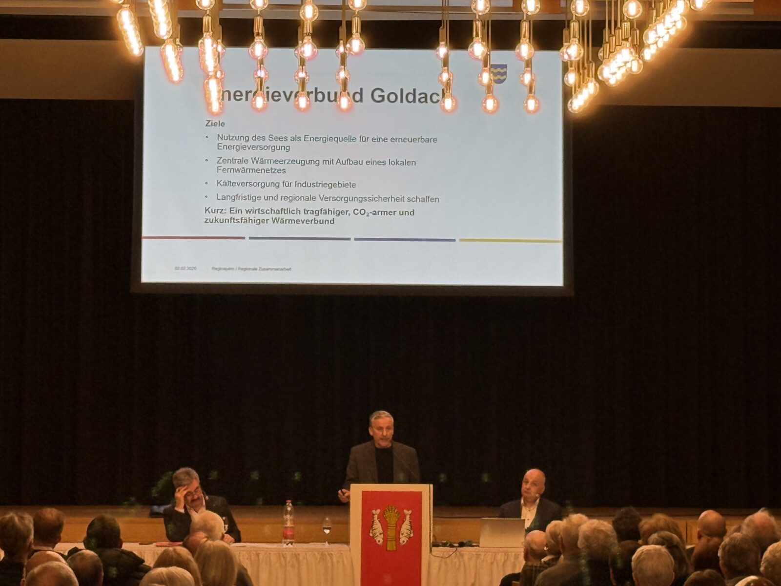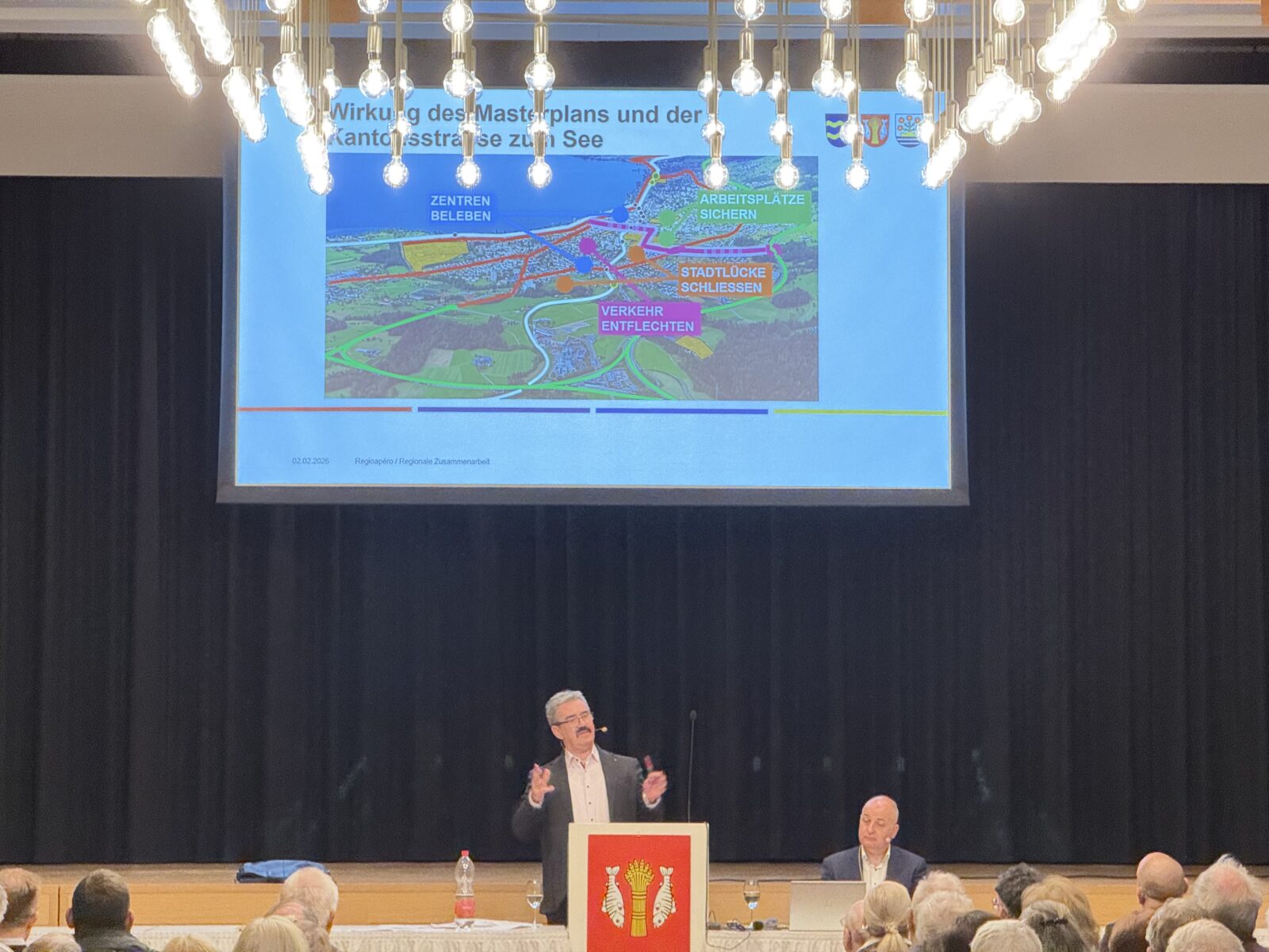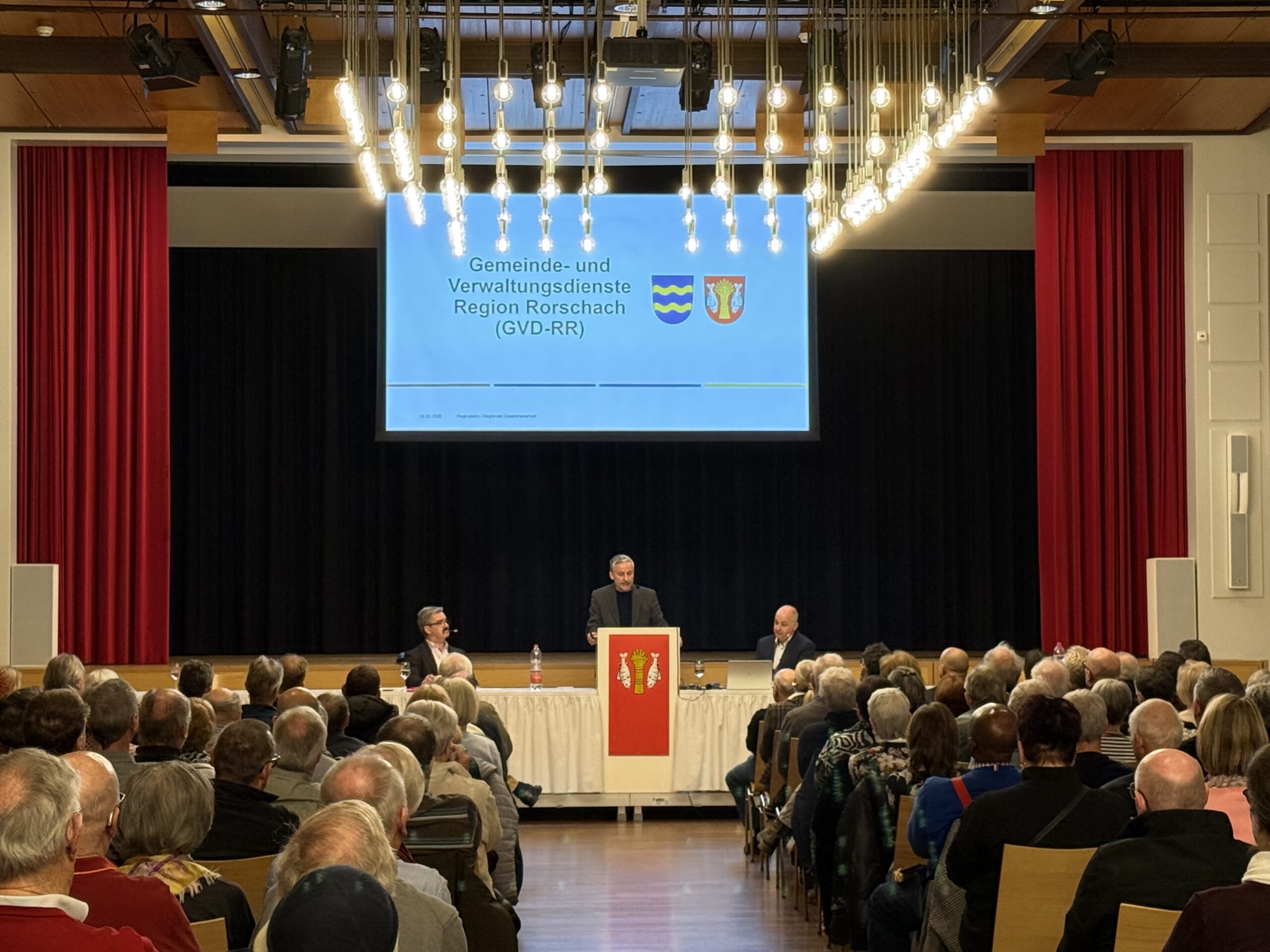 Die ersten Themen des Abends waren die Informatikdienste der Region Rorschach (IDRR), welche durch den Rorschacher Schulratspräsidenten Guido Etterlin vorgestellt wurden. Danach erläuterte der Goldacher Gemeindepräsident Dominik Gemperli die vorgesehene Optimierung der Gemeinde- und Verwaltungsdienste der politischen Gemeinden Goldach und Rorschach, die an den jeweiligen Bürgerversammlungen zur Abstimmung kommen. Weiters wurde auf die Zukunft der regionalen Wasserversorgung sowie der Anergie- und Fernwärmenetze in Goldach und Rorschach eingegangen. Vorgestellt wurde das von Dominik Gemperli (Goldach stimmt darüber am 8. März 2026 ab) und Stadtpräsident Röbi Raths. Er hat dann zum Schluss auch die bevorstehende Abstimmung über die Kantonsstrasse zum See und den dazu gehörenden Autobahnanschluss Plus zum Thema gemacht. Auch hier fällt die Bevölkerung des Kantons St.Gallen am 8. März 2026 die Entscheidung.