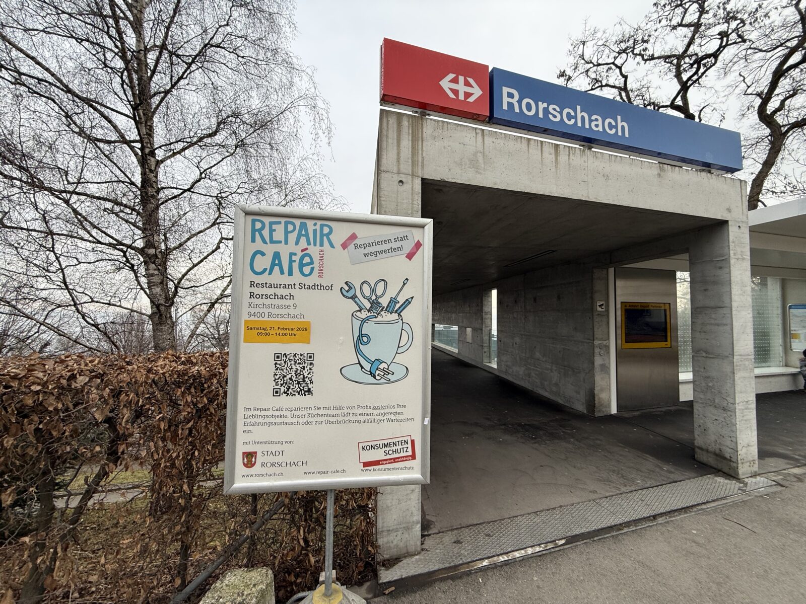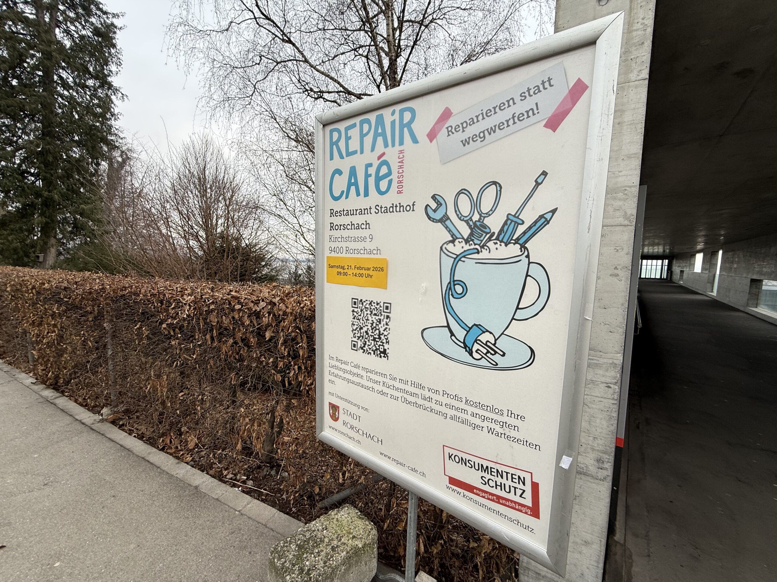Die grossen Plakate sind im Strassenbild der Region nicht zu übersehen. Die Idee mit der Flickkultur in Rorschach nimmt Fahrt auf. Die InitiantInnen schreiben dazu: „Aufruf an alle: wenn ein Gegenstand nicht mehr funktioniert – nicht wegwerfen, sondern am 21. Februar 2026 ins Repair Café ins Restaurant Stadthof in Rorschach bringen! Dort wartet ein gutes Dutzend von erfahrenen Flickerinnen und Flickern aller Gattungen darauf, ihr Handwerk zu demonstrieren. Ehrenamtlich (jawohl, gratis!), weil es an diesem Tag um das Fördern der Flickkultur geht.“