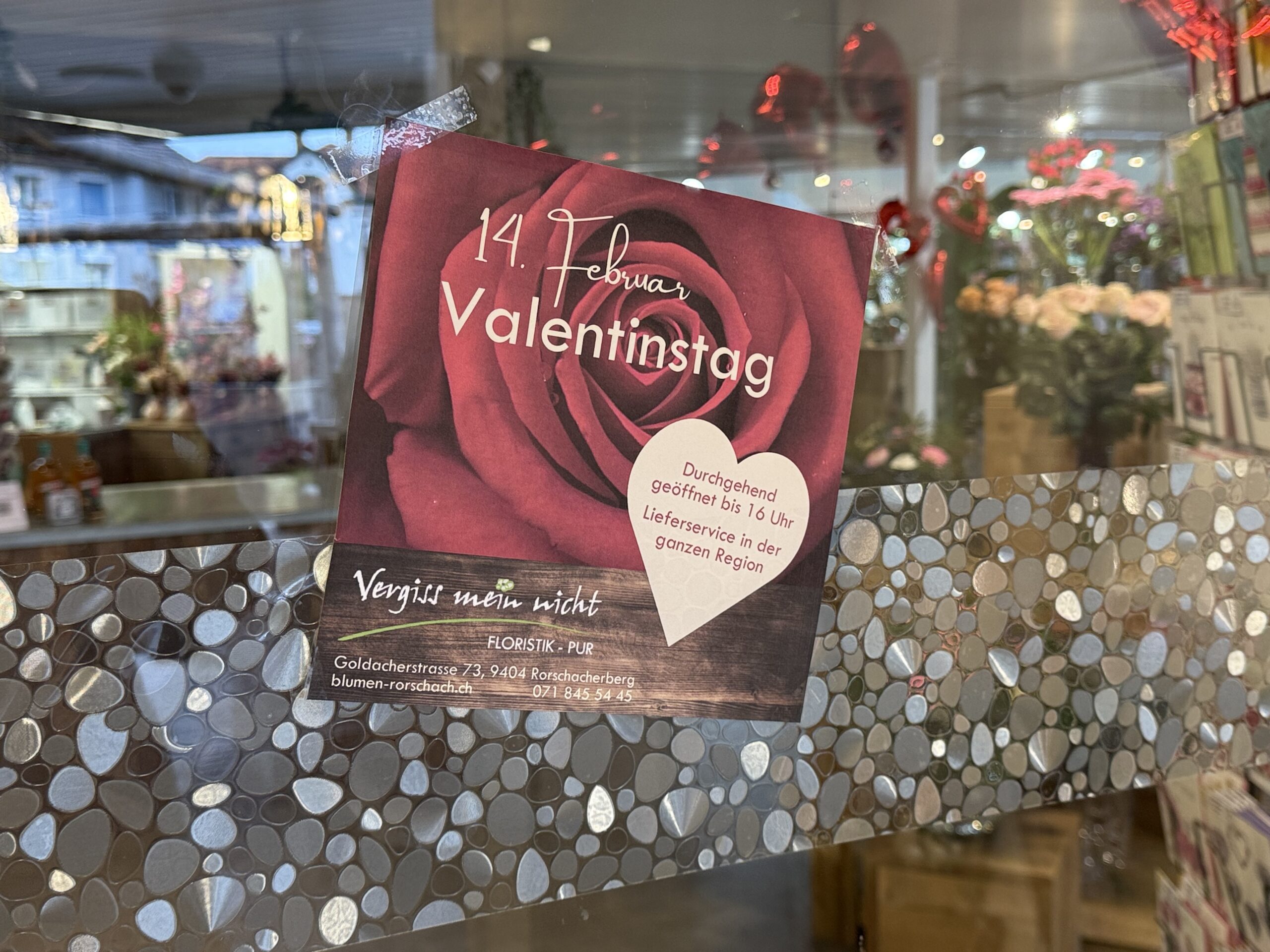 Corina Hirzel ist nicht nur Präsidentin des Gewerbevereins der Region Rorschach sondern auch Inhaberin des Blumengeschäfts „Vergiss mein nicht“ an der Goldacherstrasse 73 in Rorschacherberg und seit über 20 Jahren mit Leib und Seele Floristin. Für den morgigen Valentinstag hat sie ihr Fachgeschäft so aufgepeppt, dass es nahezu unmöglich ist, für die Liebste oder den Liebsten kein passendes Mitbringsel zu finden. Heute Freitag ist das Blumengeschäft von 8:00 bis 12:00 Uhr und am Nachmittag von 13:30 – 18:30 Uhr geöffnet, morgen Samstag durchgehend von 08:00 – 16:00 Uhr. Es wird auch ein Lieferservice in der Region angeboten. Hier eine Auswahl – gestern am späteren Nachmitttag fotografiert.