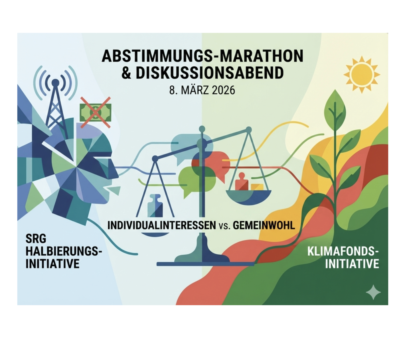 Der heutige Männerapéro befasst sich mit der nächsten Abstimmung. Das Männerapéro-Team schreibt dazu: „Am 8. März 2026 kommt es in der Schweiz zu einem Abstimmungsmarathon. Aus der Flut der Vorlagen picken wir jene zwei heraus, bei denen sich Individualinteressen und Gemeinwohl am ehesten gegenüberstehen – konkret diskutieren wir kommenden Freitag, 20. Februar 2026, ab 20 Uhr im Haus GleisK an der Signalstrasse 34 in Rorschach über die SRG Halbierungsinitiative und die Klimafondsinitiative.