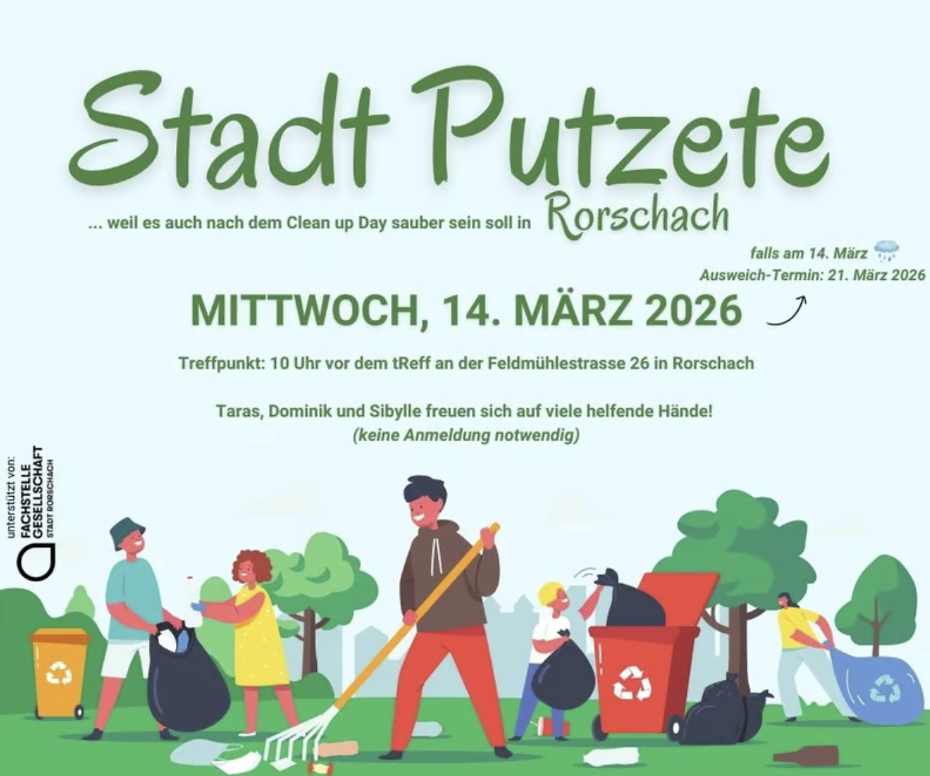 Der Frühling steht vor der Tür, und in Kürze strömen wieder unzählige Leute ans schöne Rorschacher Bodenseeufer. Die fleissigen Mitarbeiterinnen und Mitarbeiter vom Werkhof sind dann wieder früh morgens unterwegs, um für uns alle für ein aufgeräumtes Seeufer zu sorgen. Auch das Personal der Stadtgärtnerei ist das ganze Jahr für unsere Hafenstadt unterwegs. Es hegt und pflegt Parkanlagen, Grünflächen, Bäume und Blumenrabatten. Der Verein Rorschach Plus sagt im Namen seiner Mitglieder Danke und sponserte für die beiden Teams einen Znüni.