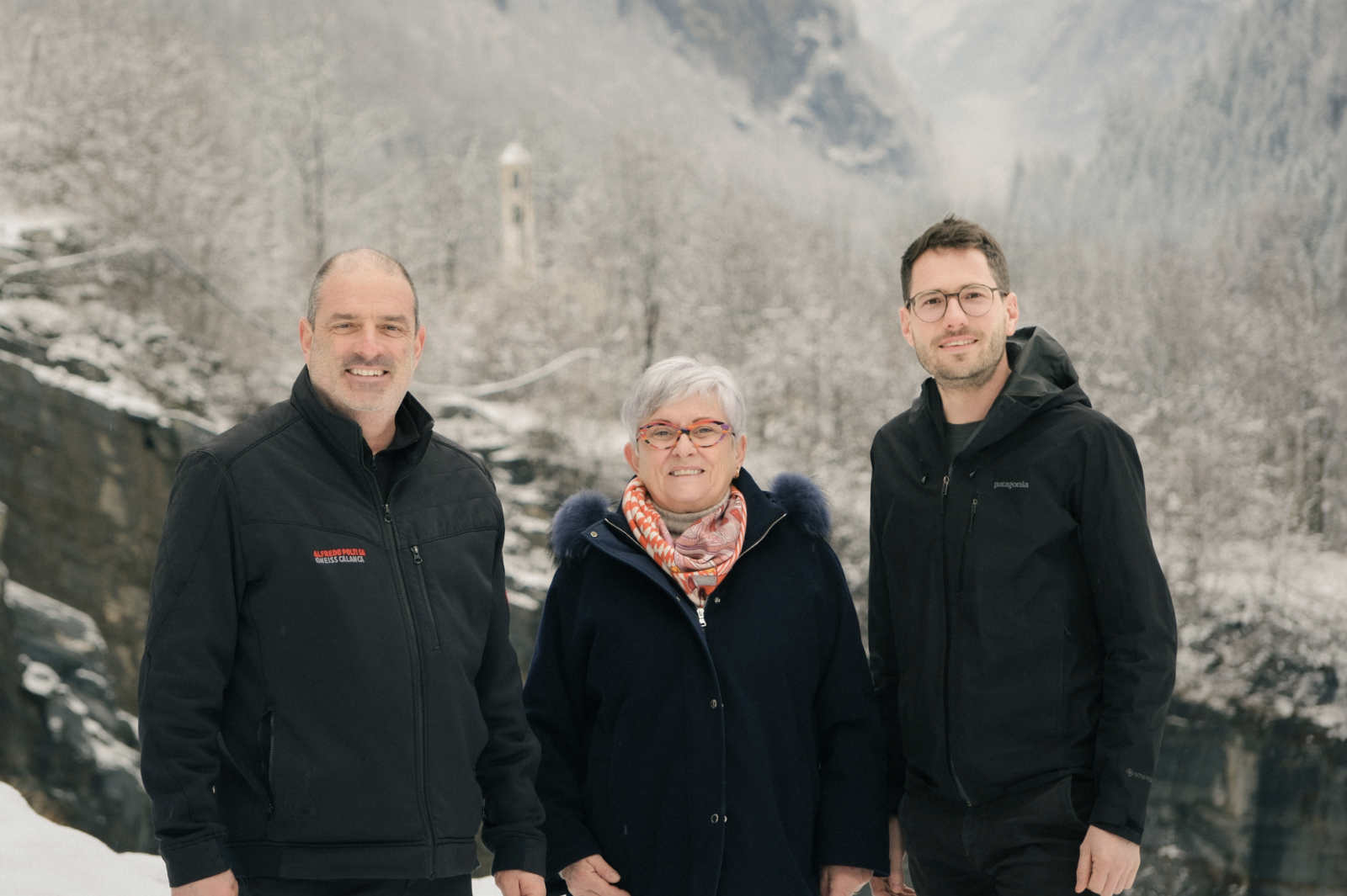 Die Alfredo Polti SA wird per 1. Januar 2027 Teil der Bärlocher Gruppe. Der Familienbetrieb aus dem Calancatal und das Natursteinunternehmen aus Staad verbindet eine langjährige Zusammenarbeit und eine gemeinsame Haltung gegenüber Material, Qualität und regionaler Verantwortung. Das Beitragsbild zeigt v.l.n.r.: Giovanni Polti, Vania Polti Ambrosini und Christian Bärlocher im Steinbruch der Alfredo Polti SA im Calancatal. Bildrechte: Bärlocher Gruppe.