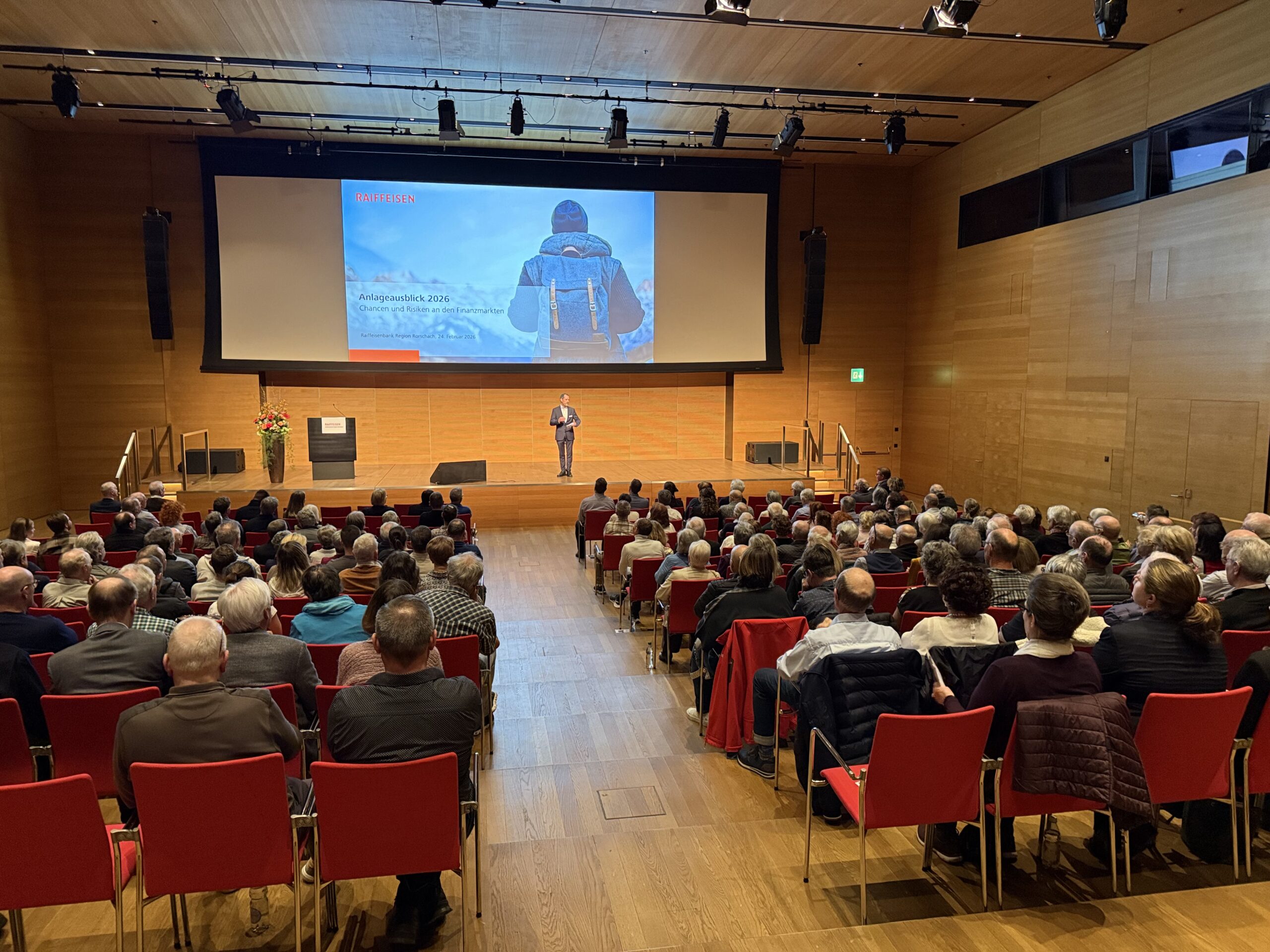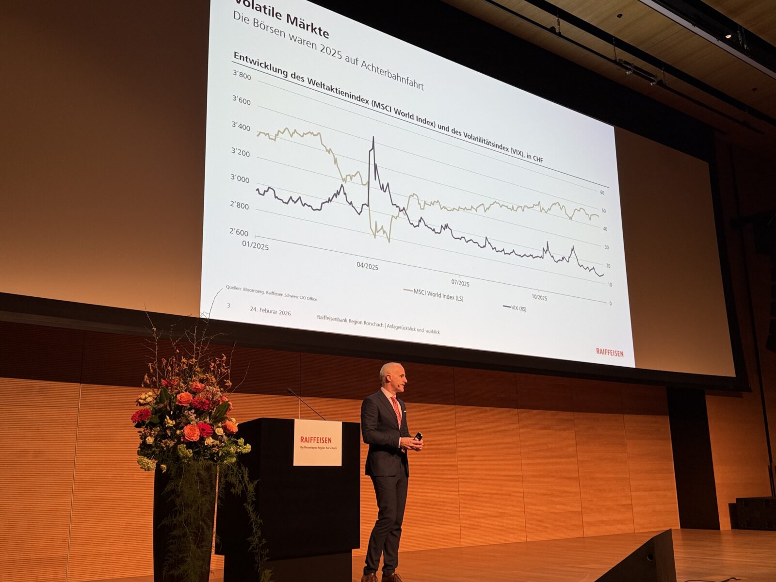 Da war gestern Abend einiges los im Würth Haus Rorschach. Die Raiffeisenbank der Region Rorschach hat zu einem Anlageausblick eingeladen und konnte damit viele Interessierte erreichen. Im Fokus natürlich das Geld. Der Raiffeisen Chief Investment Officer (CIO) Matthias Geissbühler erläuterte, dass nebst einer fundierten Einschätzung der Märkte eine konsequente und strukturierte Umsetzung im Portfolio von entscheidender Bedeutung sei. Gemeinsam wurde ein Blick auf die ersten Wochen des neuen Jahres geworfen und die Einschätzungen für das laufende Jahr erläutert. Hier einige Impressionen von gestern Abend.