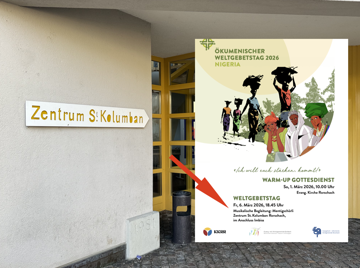 Auch in Rorschach: ökumenischer Weltgebetstag 2026Themen:Kath. RorschachKulturPartnerRef. GoldachRef. RorschachRorschach 5. März 2026 - 05:20Die Feier findet morgen Freitag, 6. März 2026, ab 18:45 Uhr, im Zentrum St. Kolumban in Rorschach statt. Für die musikalische Auflockerung ist das Mentigschörli zuständig und im Anschluss gibt es einen Imbiss.Teilen mit: Einen Link per E-Mail an einen Freund senden (Wird in neuem Fenster geöffnet) E-Mail Drucken (Wird in neuem Fenster geöffnet) Drucken Auf Facebook teilen (Wird in neuem Fenster geöffnet) Facebook Auf X teilen (Wird in neuem Fenster geöffnet) X Auf WhatsApp teilen (Wird in neuem Fenster geöffnet) WhatsApp Gefällt mir:Gefällt mir Wird geladen …Newsletter abonnieren Bitte dieses Feld leer lassenBitte wähle, ob Du über jeden neuen Beitrag sofort oder lieber jeden Morgen gegen 9 Uhr eine Zusammenfassung der neusten Beiträge erhalten möchtest.Liste(n) auswählen: Neues vom Echo (Zusammenfassung) Neues vom Echo (Sofortbenachrichtigung) Dieses Feld wird benötigt.Prüfen Sie Ihren Posteingang und den Spamordner, um Ihr Abonnement zu bestätigen.