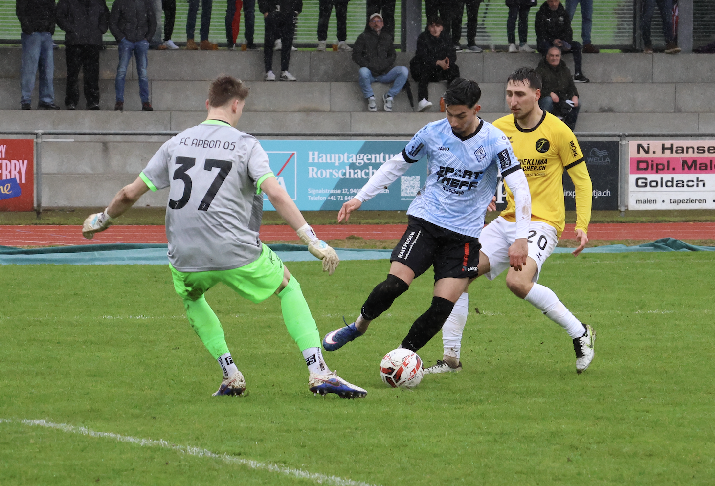 Nur fünf Minuten nach der Pause tauchte Rushan Iyadurai plötzlich freistehend vor Goali Jordi Forster auf und erzielte den überraschenden Führungstreffer für die Gäste. Arbon verteidigte clever, Captain Damian Bont war ein Turm in der Abwehrschlacht. Die Einheimischen versuchten es immer wieder, jedoch wurde es den Gästen auch leicht gemacht. Das Kellen-Team strebte den Ausgleich zu oft durch die Mitte an. In der 66. Minute verpasste der eingewechselte Andrej Petrovic die wohl grösste Möglichkeit zum Ausgleich. Auf der Gegenseite hätte Joel Haltinner das zweite Tor für die Thurgauer erzielen können.