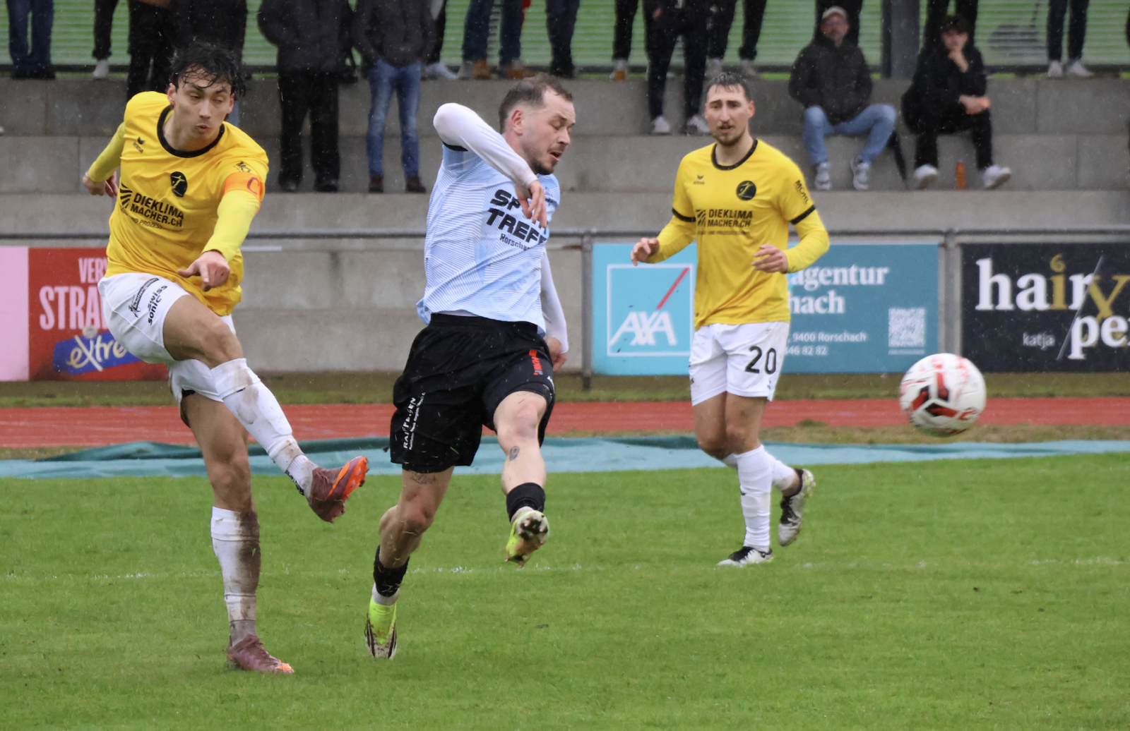 Manch einer glaubte nicht mehr an einen Punktgewinn für das Heimteam, nachdem der FC Arbon in der 50. Minute überraschend in Führung gegangen war. Bis zur 87. Minute versiebte das Blumer-Team zig hochkarätige Chancen, darunter einen Penalty (15.). Mit einem unglaublichen Willen, dieses Spiel nicht verlieren zu wollen, drehten die Schwarz-Blauen das Spiel und stehen damit aktuell auf Platz 6 in der Tabelle.