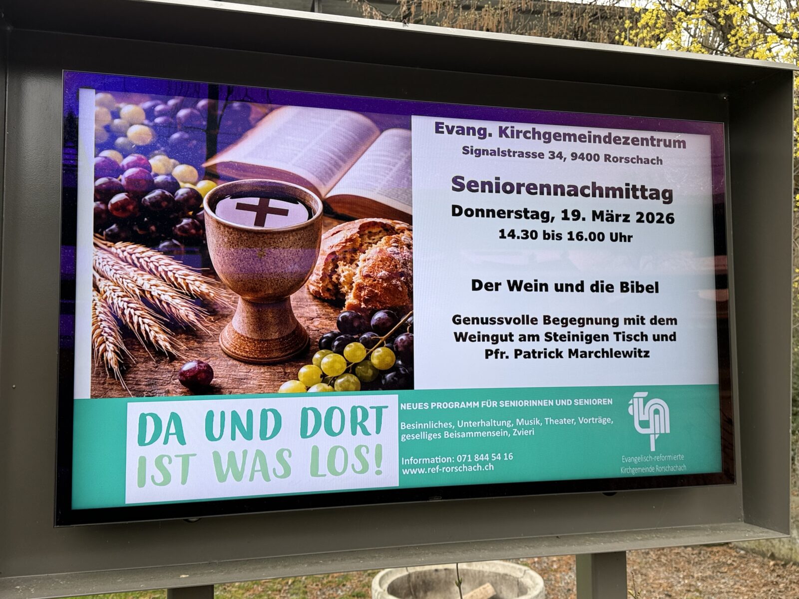 Heute findet ein weiterer Seniorennachmittag stattThemen:KulturPartnerRef. RorschachRorschach 19. März 2026 - 05:15Heute Donnerstag, 19. März 2026 um 14.30 Uhr im Evangelischen Kirchgemeindezentrum. Anschliessend gibt es einen feinen Zvieri. Alle Interessierten sind dazu herzlich eingeladen.Teilen mit: Einen Link per E-Mail an einen Freund senden (Wird in neuem Fenster geöffnet) E-Mail Drucken (Wird in neuem Fenster geöffnet) Drucken Auf Facebook teilen (Wird in neuem Fenster geöffnet) Facebook Auf X teilen (Wird in neuem Fenster geöffnet) X Auf WhatsApp teilen (Wird in neuem Fenster geöffnet) WhatsApp Gefällt mir:Gefällt mir Wird geladen …Newsletter abonnieren Bitte dieses Feld leer lassenBitte wähle, ob Du über jeden neuen Beitrag sofort oder lieber jeden Morgen gegen 9 Uhr eine Zusammenfassung der neusten Beiträge erhalten möchtest.Liste(n) auswählen: Neues vom Echo (Zusammenfassung) Neues vom Echo (Sofortbenachrichtigung) Dieses Feld wird benötigt.Prüfen Sie Ihren Posteingang und den Spamordner, um Ihr Abonnement zu bestätigen.