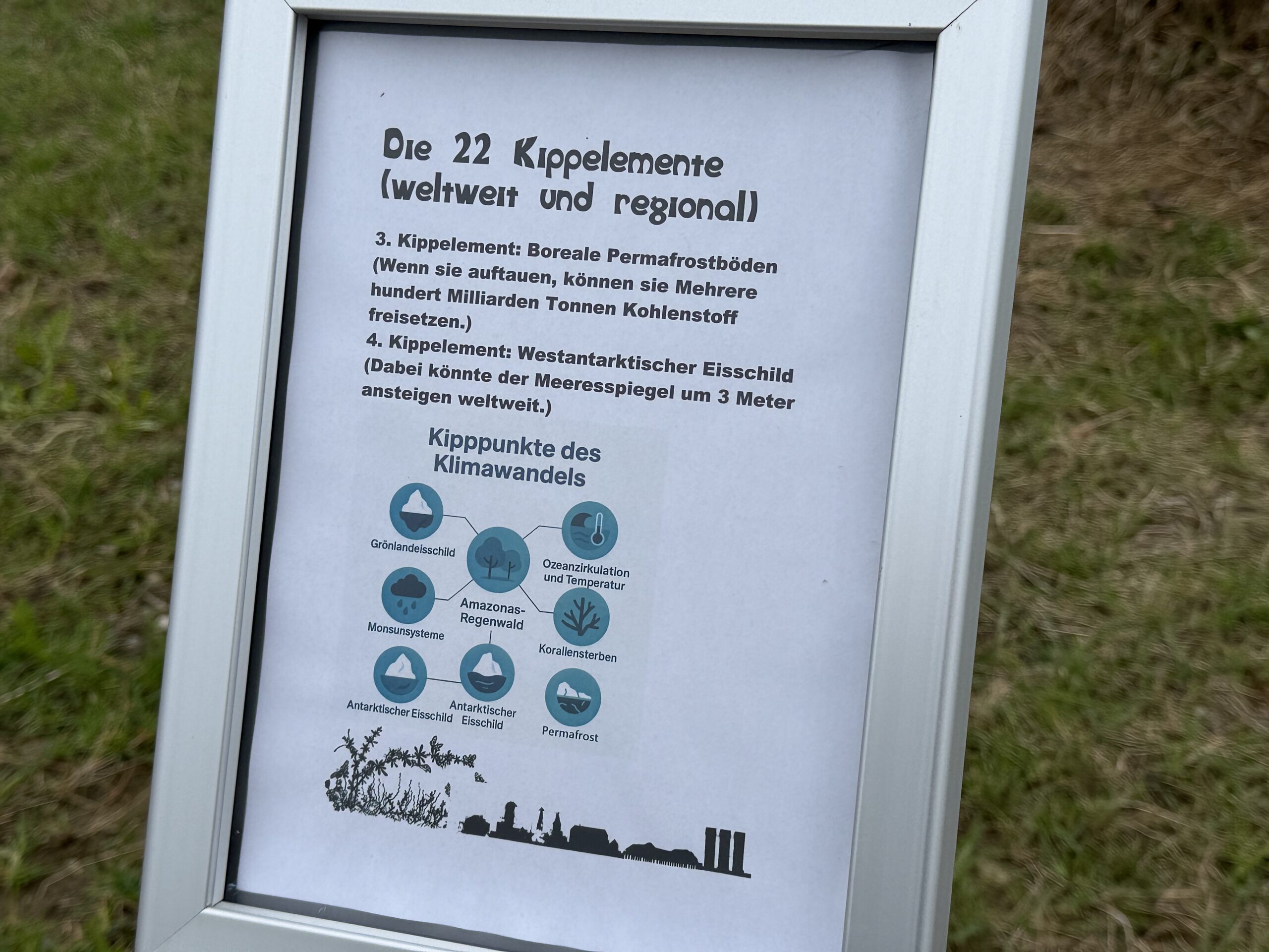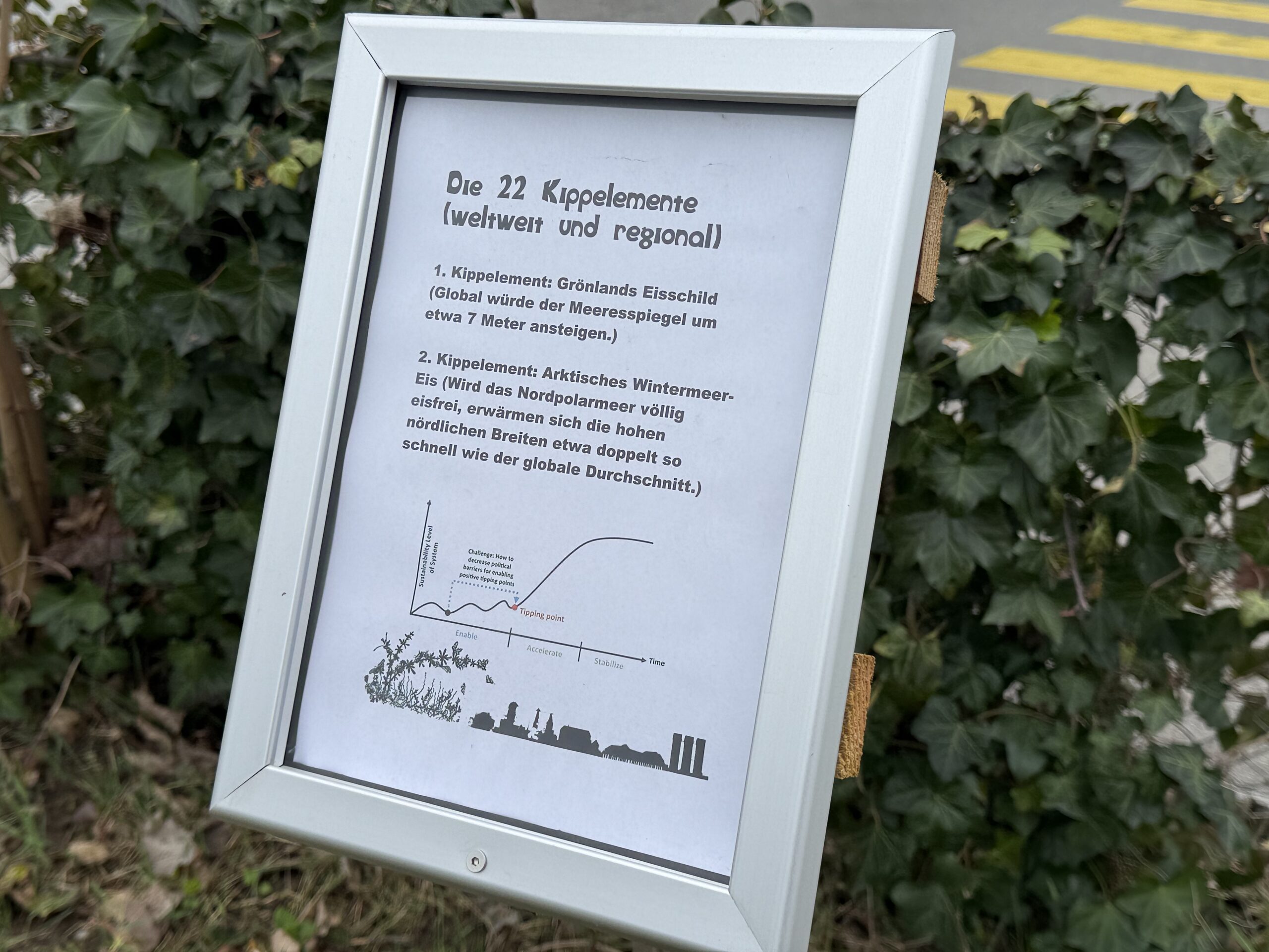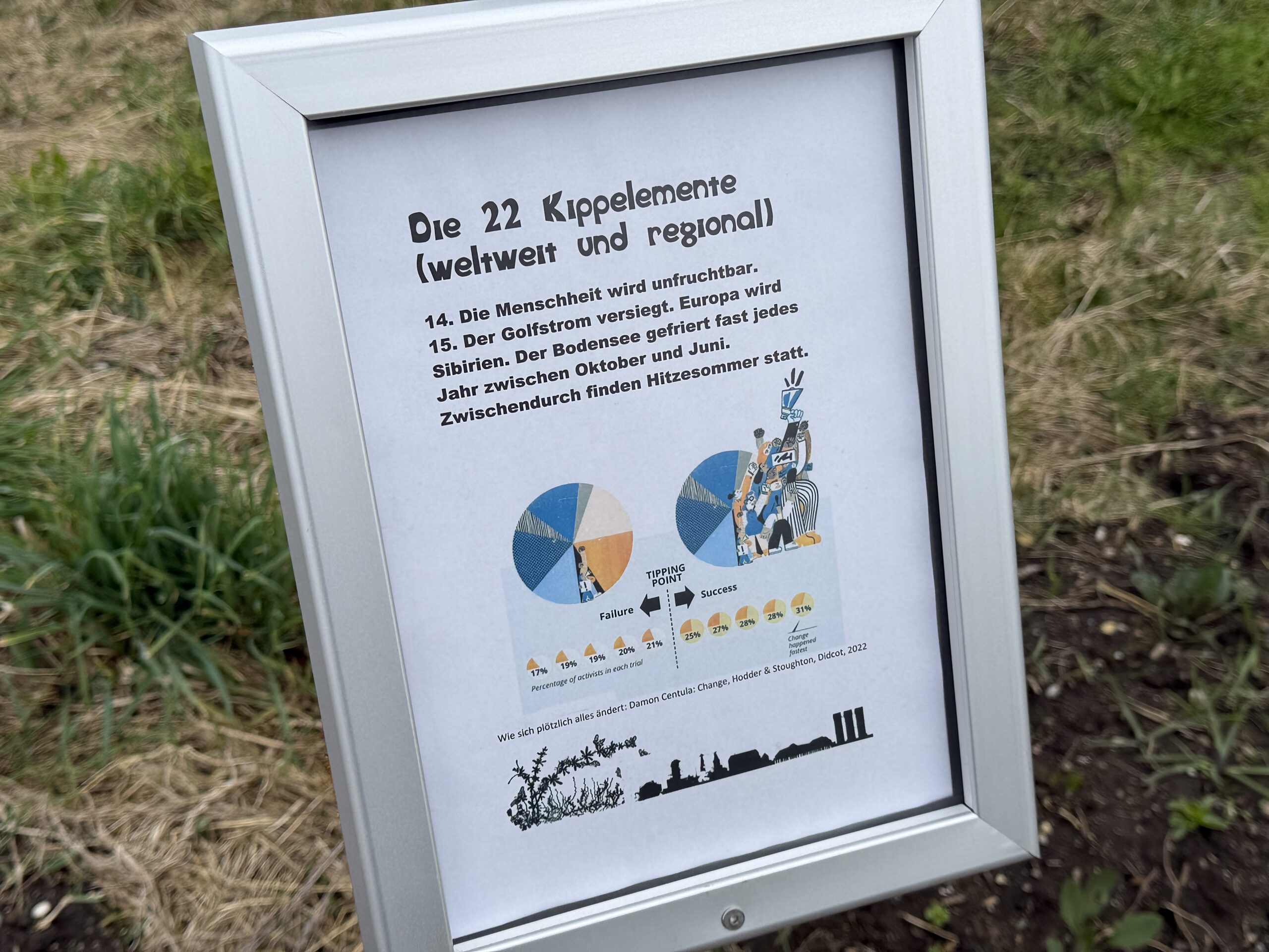 Seit einigen Tagen hängen an den 10 Klimainformationstafeln im Klima- und Biodiversitätsgarten die neuen Schilder «Die 22 Kippelemente (weltweit und regional)». Die InitiantInnen rund um die Rorschacher „Klimaktiv“-Gruppe schreiben dazu: „Kippunkte oder Kippelemente werden solche Veränderungen bezeichnet, die die Klimaerwärmung steigern, ohne dass man dagegen noch etwas tun kann.