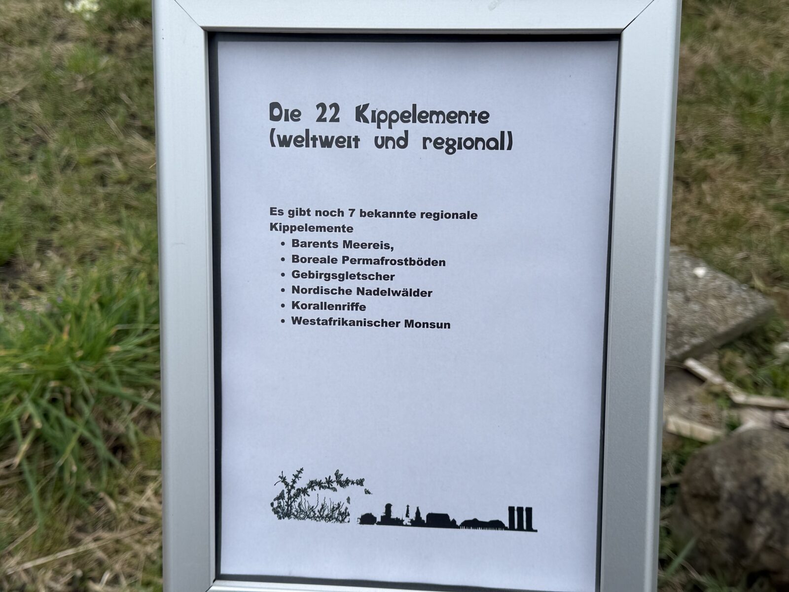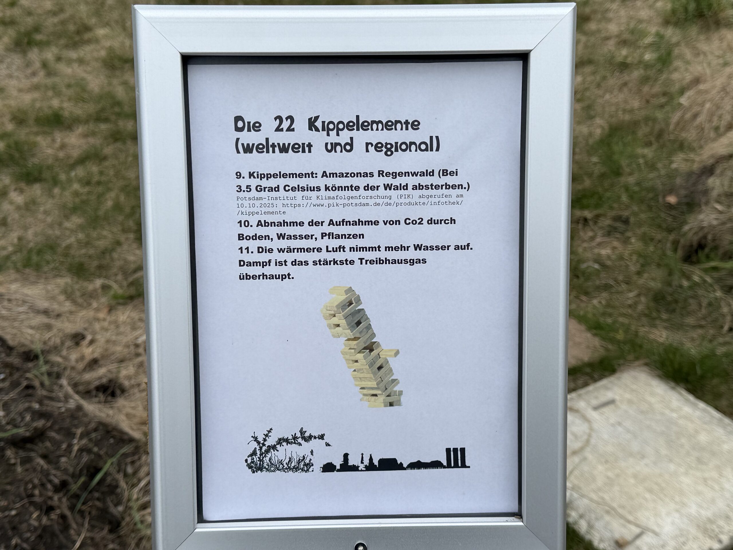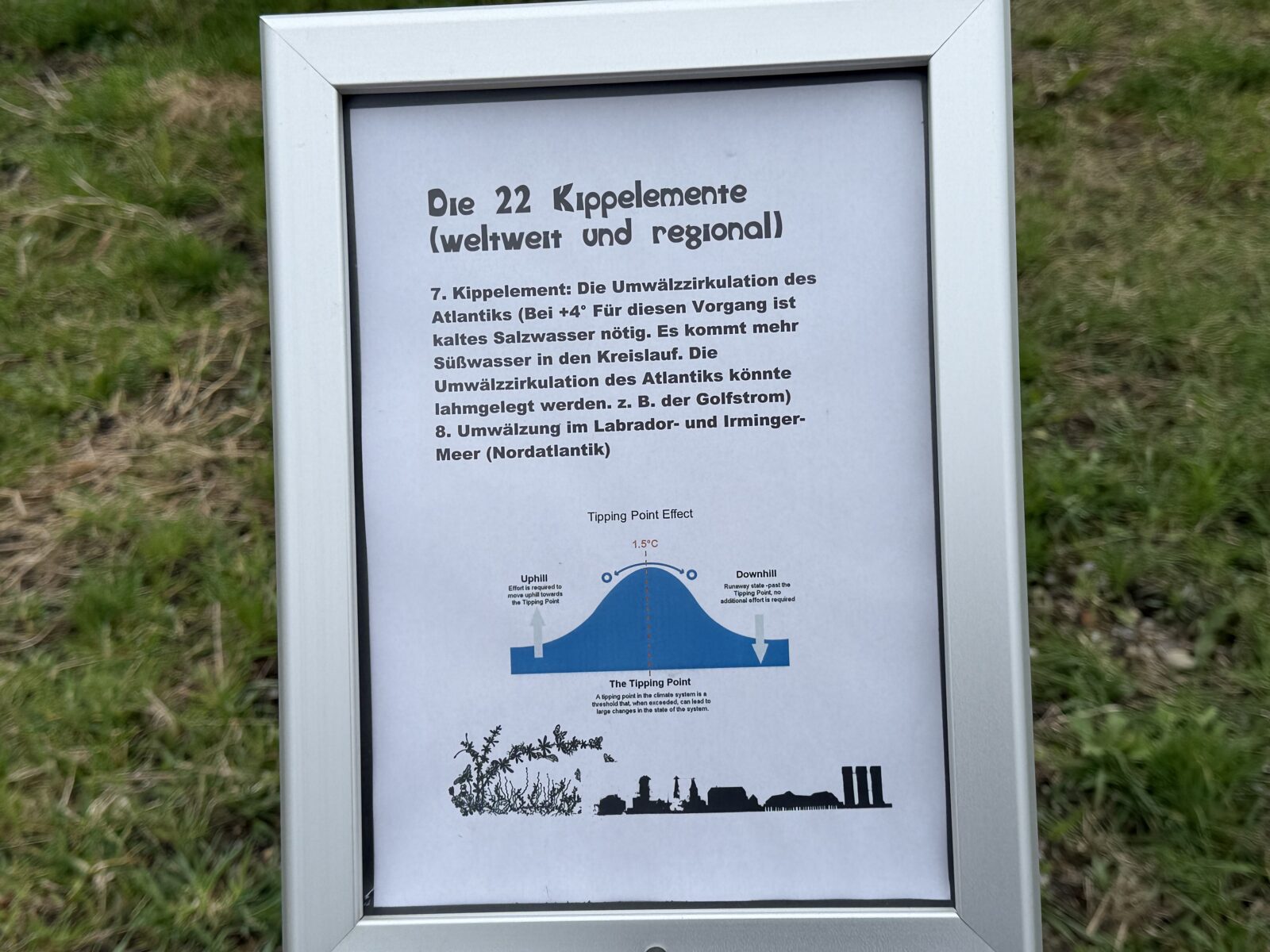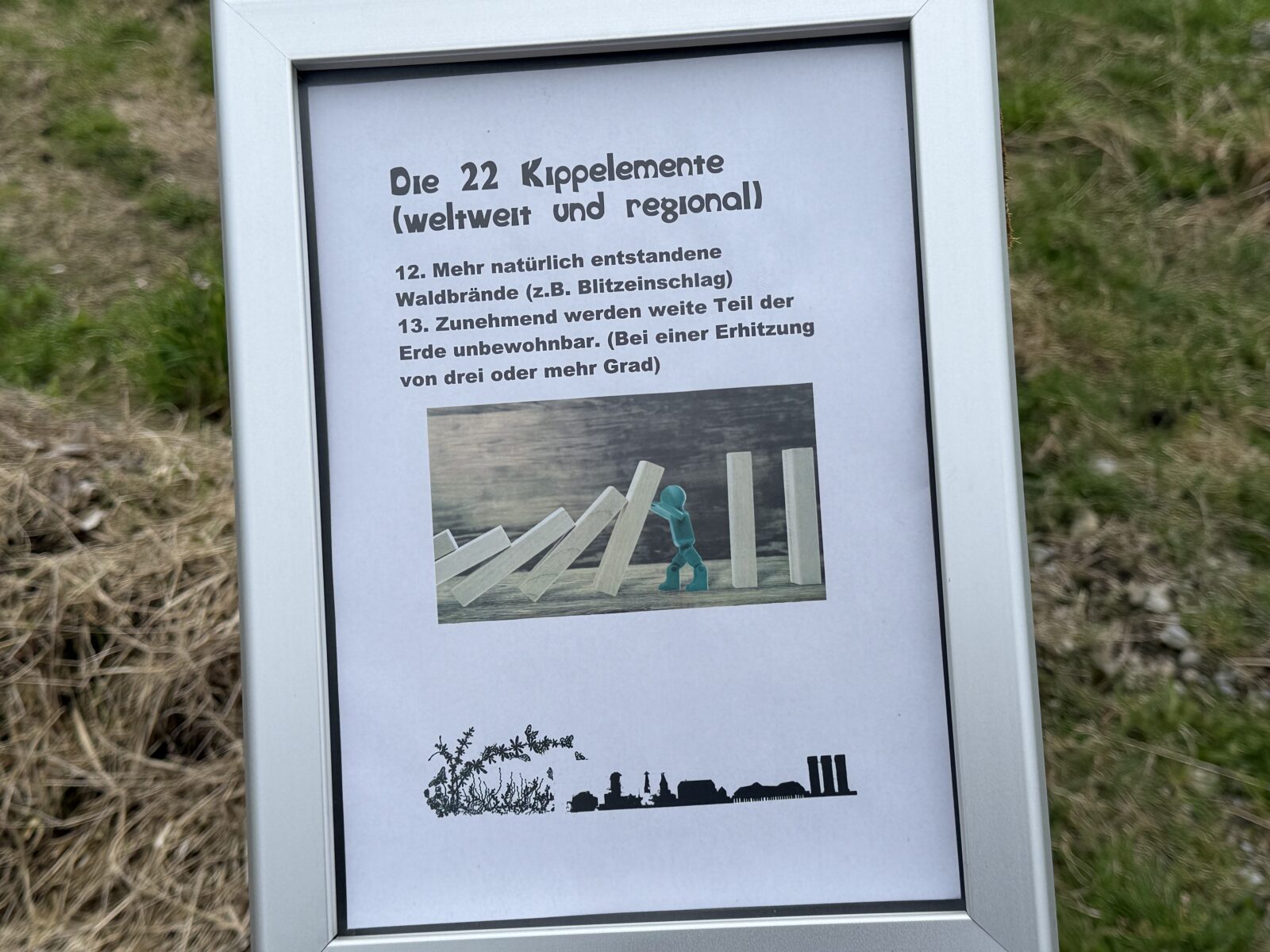 Seit einigen Tagen hängen an den 10 Klimainformationstafeln im Klima- und Biodiversitätsgarten die neuen Schilder «Die 22 Kippelemente (weltweit und regional)». Die InitiantInnen rund um die Rorschacher „Klimaktiv“-Gruppe schreiben dazu: „Kippunkte oder Kippelemente werden solche Veränderungen bezeichnet, die die Klimaerwärmung steigern, ohne dass man dagegen noch etwas tun kann.
