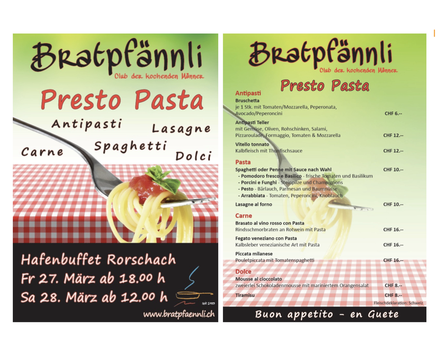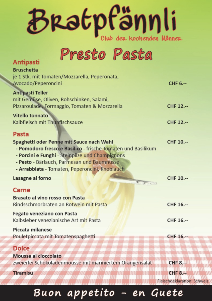 Presto Pasta ist angesagt. Heute Freitag ab 18 Uhr, morgen Samstag bereits ab 12 Uhr. Mehr zu den Rorschacher Hobbyköchen findet man auch hier.