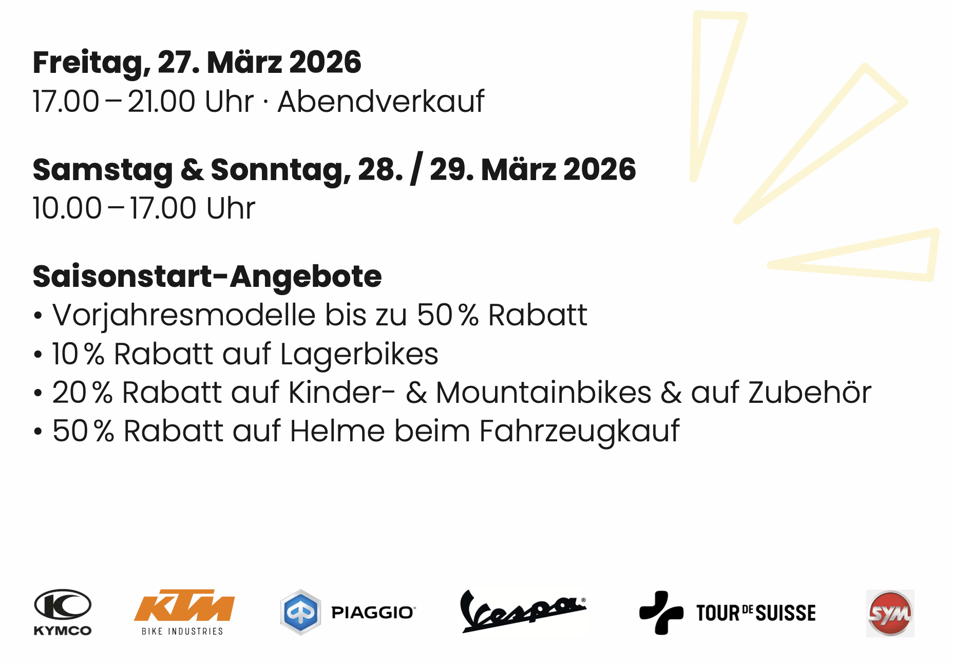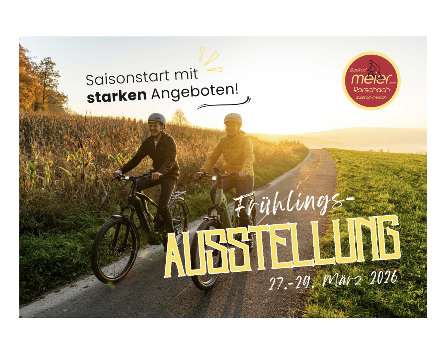 Zweirad Meier GmbH lädt zur FrühlingsausstellungThemen:Rorschach 27. März 2026 - 05:30Geschäftsführer Christoph Schär und sein Team laden an diesem Wochenende zur Frühlingsausstellung an die Löwenstrasse 35 in Rorschach. Details findet man unten. Mehr zu Zweirad Meier findet man hier und auch hier.Teilen mit: Einen Link per E-Mail an einen Freund senden (Wird in neuem Fenster geöffnet) E-Mail Drucken (Wird in neuem Fenster geöffnet) Drucken Auf Facebook teilen (Wird in neuem Fenster geöffnet) Facebook Auf X teilen (Wird in neuem Fenster geöffnet) X Auf WhatsApp teilen (Wird in neuem Fenster geöffnet) WhatsApp Gefällt mir:Gefällt mir Wird geladen …Newsletter abonnieren Bitte dieses Feld leer lassenBitte wähle, ob Du über jeden neuen Beitrag sofort oder lieber jeden Morgen gegen 9 Uhr eine Zusammenfassung der neusten Beiträge erhalten möchtest.Liste(n) auswählen: Neues vom Echo (Zusammenfassung) Neues vom Echo (Sofortbenachrichtigung) Dieses Feld wird benötigt.Prüfen Sie Ihren Posteingang und den Spamordner, um Ihr Abonnement zu bestätigen.