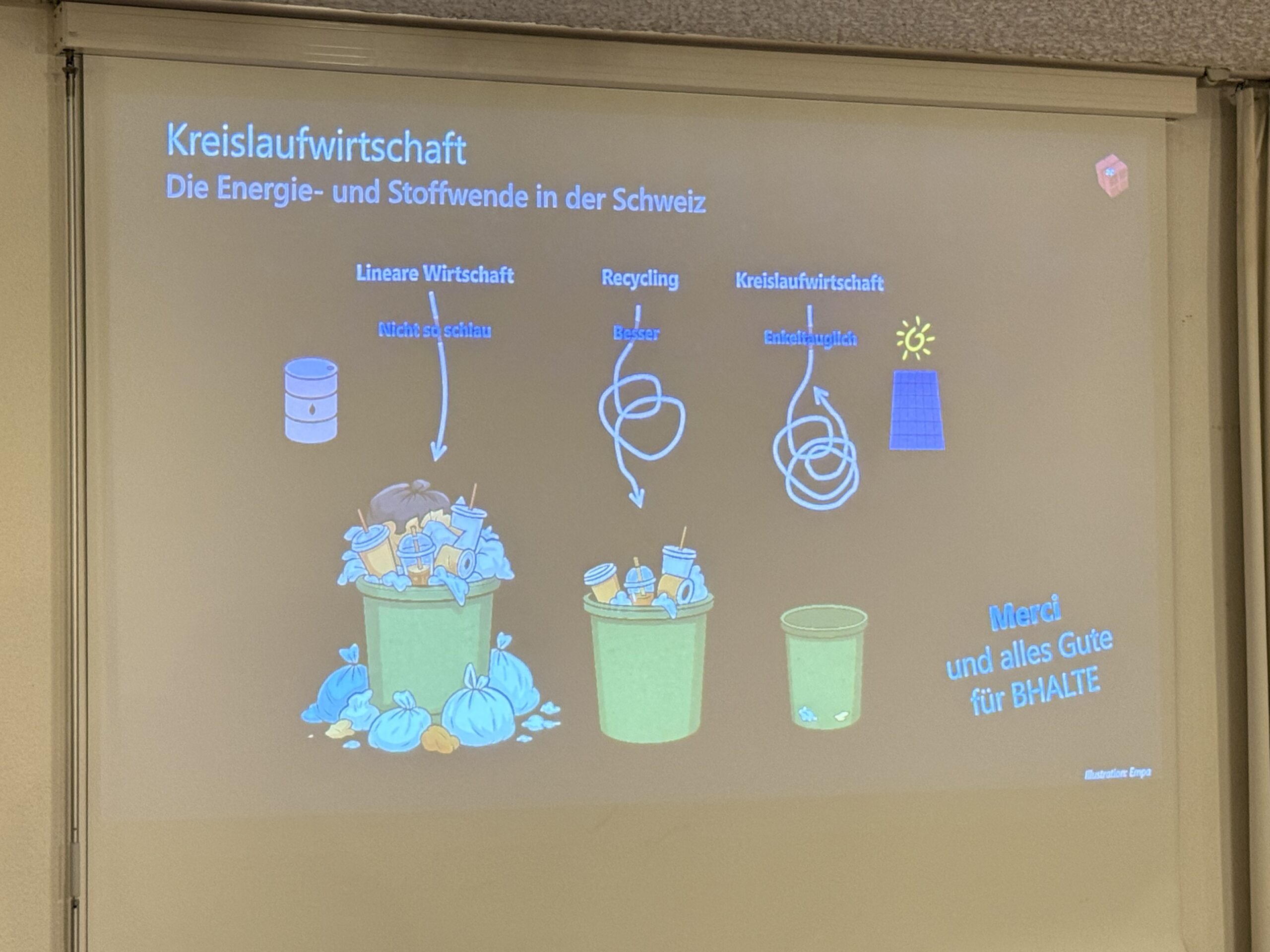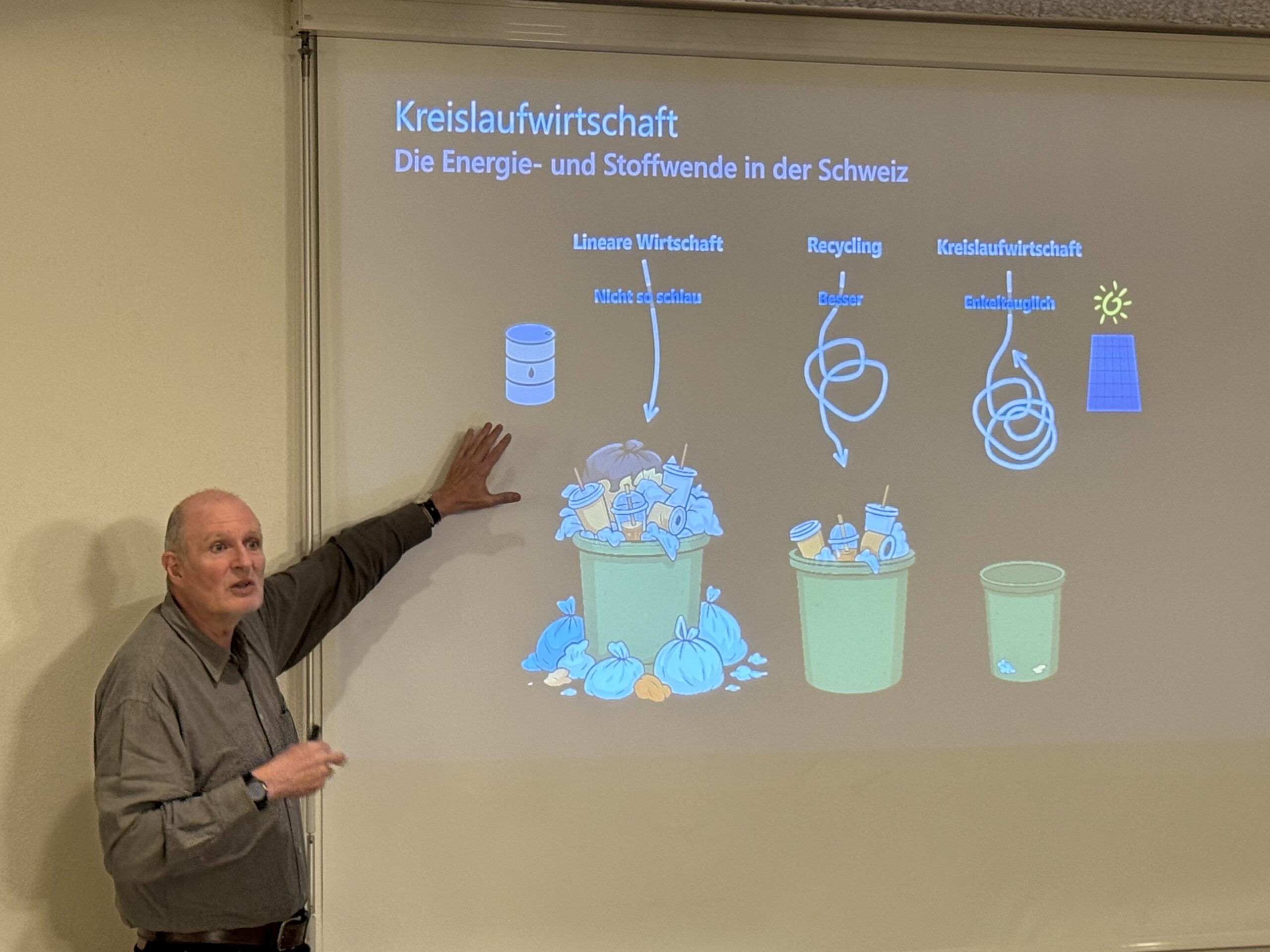 Nach den statutarischen Pflichtteilen stand der Vortrag von Marcel Gauch zur Kreislaufwirtschaft im Zentrum des Interesses. Manchmal könne es hilfreich sein, ein paar Schritte zurückzustehen und komplexere Themen aus Distanz zu betrachten. Nach diesem Motto zeigte Marcel Gauch, Nachhaltigkeitsforscher an der Empa St.Gallen, einige grundsätzliche Gedanken zum Umgang mit Materialien und Energie auf. Die Anwesenden wurden dazu inspiriert, gemeinsam in Richtung einer enkeltauglichen Zukunft voranzuschreiten. Ein Vortrag, der auch unter die Haut ging. Hier einige Impressionen daraus heraus: