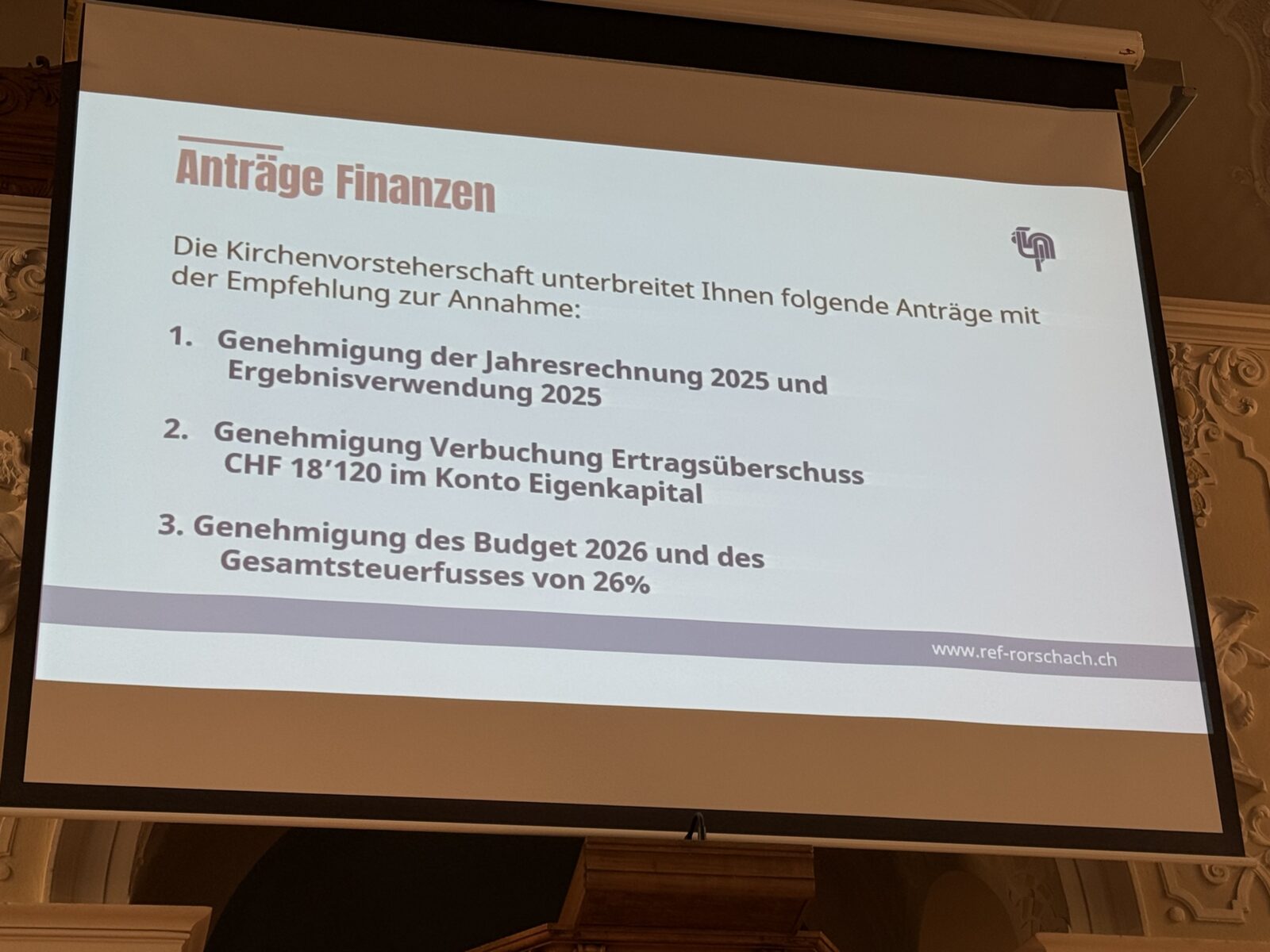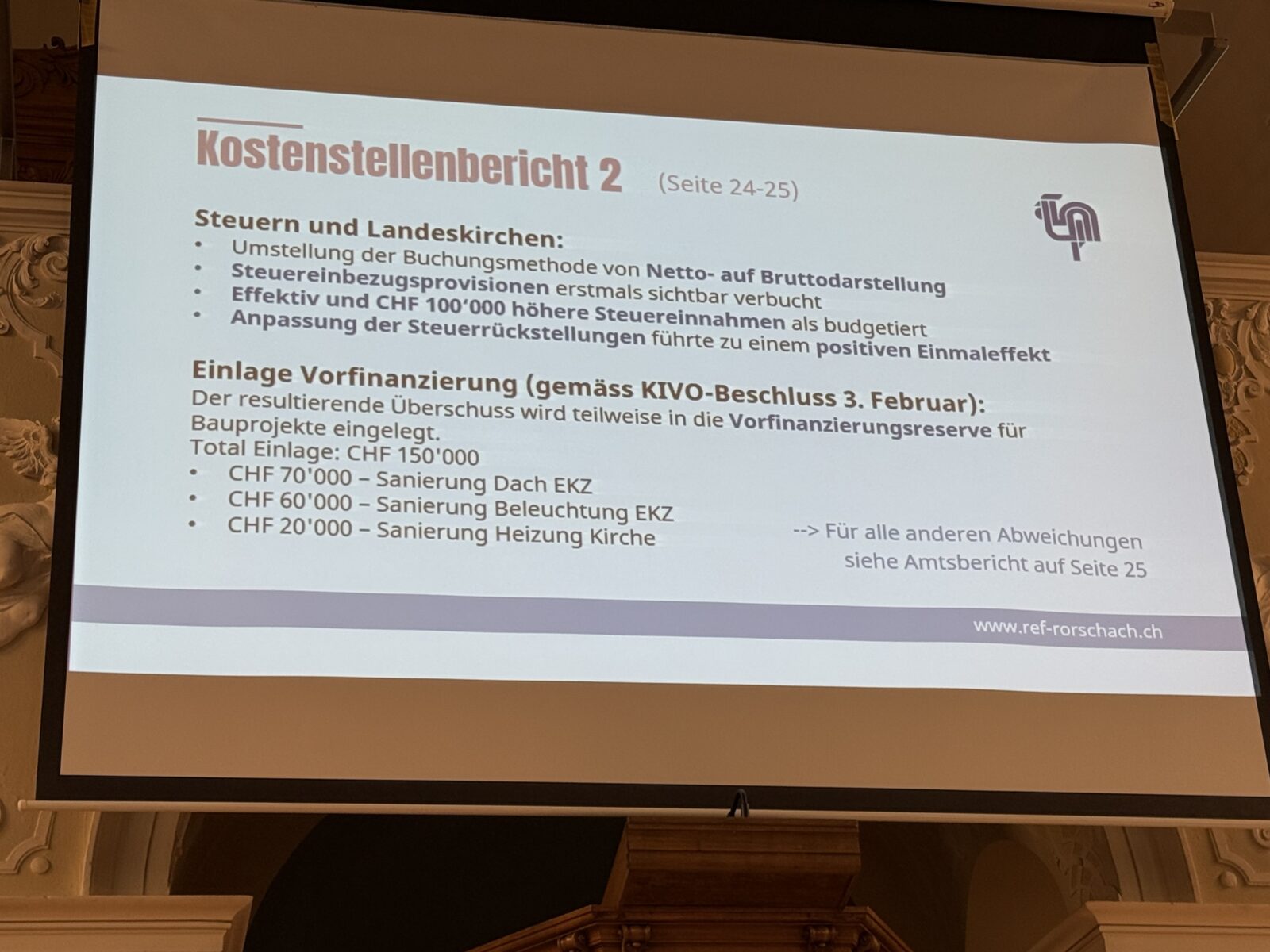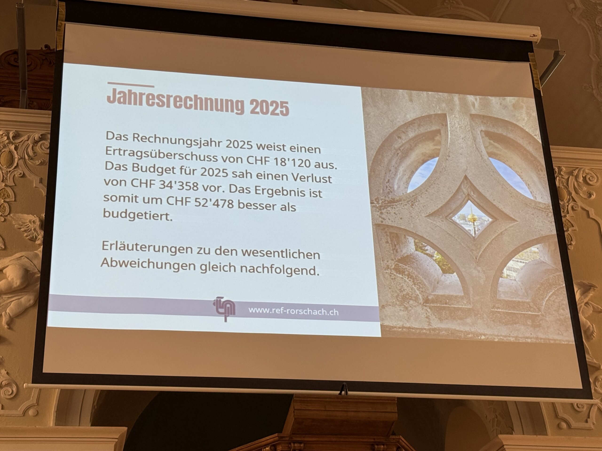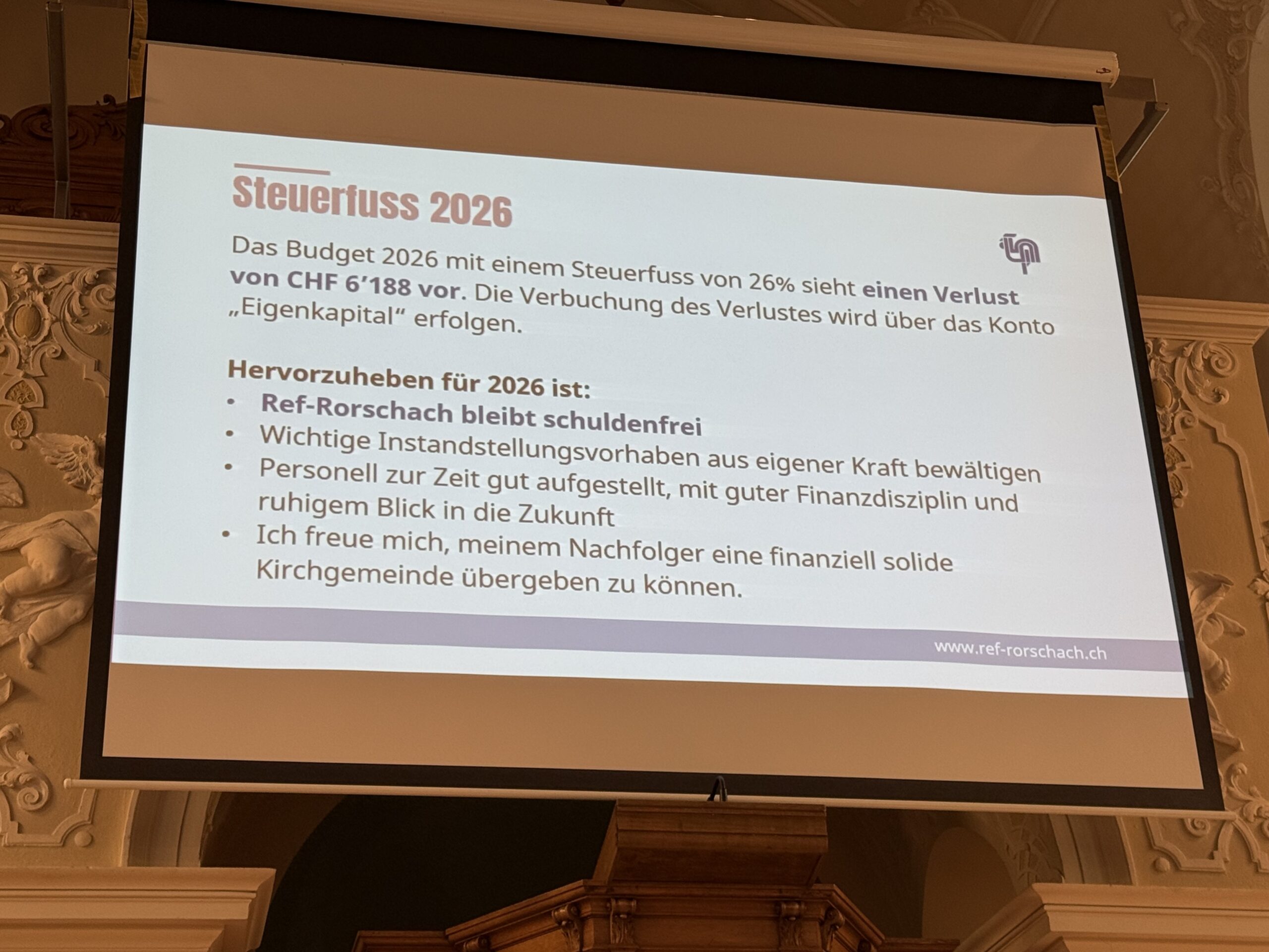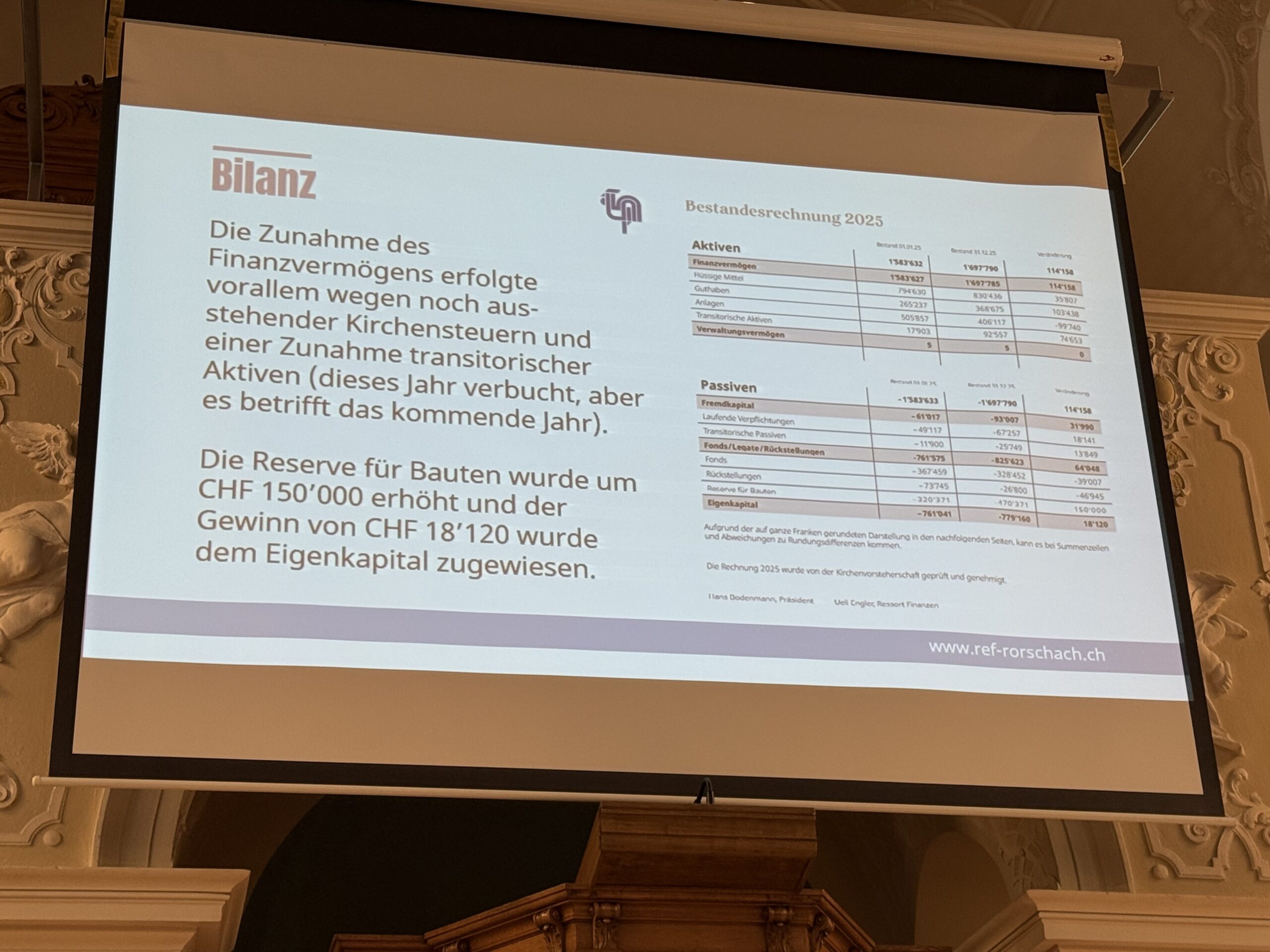 Gestern fand die ordentliche Kirchbürgerversammlung der Evang.-ref. Kirchgemeinde Rorschach statt. Präsident Hans Bodenmann (Beitragsbild) führte durch die Traktandenliste und freute sich, dass die Versammlung allen Anträgen Folge leistete. Hier einige Impressionen.