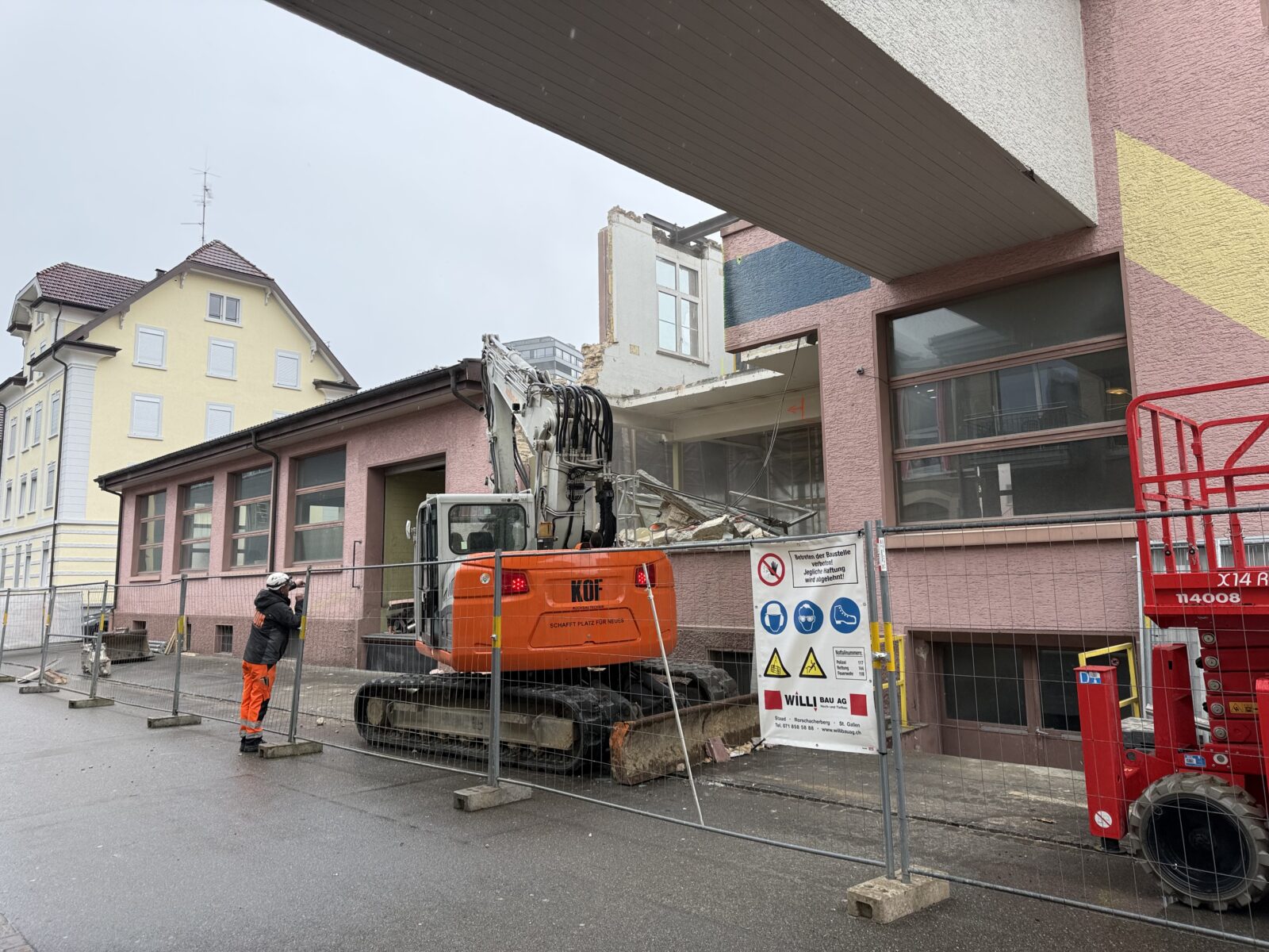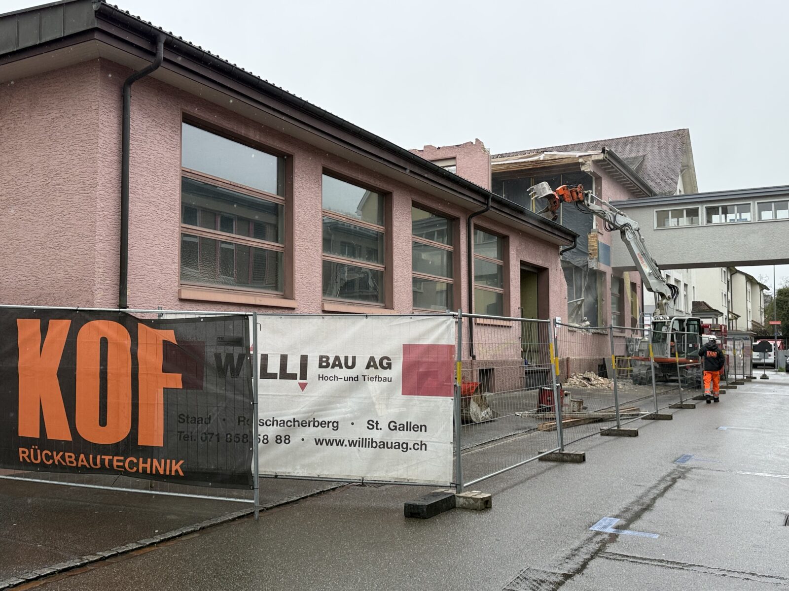 Heute ist der Bagger an der Splügenstrasse in Rorschach aufgefahren. Das Rorschacher Echo hat bereits am 3. November 2025 ausführlich über dieses Umbauprojekt berichtet. Die hier gezeigten Bilder wurden heute Nachmittag aufgenommen.