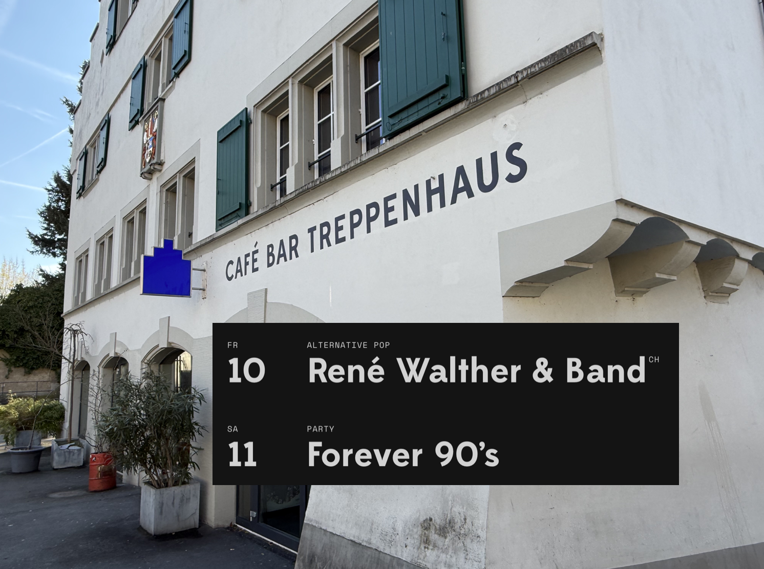 Popkonzert & 90er-Party im Treppenhaus RorschachThemen:BeizenKulturRorschachTreppenhaus 6. April 2026 - 05:25Da ist nächstes Wochenende einiges los. Mehr Infos dazu finden Interessierte hier und hier. (Fotos/Plakat: pd thr) Teilen mit: Einen Link per E-Mail an einen Freund senden (Wird in neuem Fenster geöffnet) E-Mail Drucken (Wird in neuem Fenster geöffnet) Drucken Auf Facebook teilen (Wird in neuem Fenster geöffnet) Facebook Auf X teilen (Wird in neuem Fenster geöffnet) X Auf WhatsApp teilen (Wird in neuem Fenster geöffnet) WhatsApp Gefällt mir:Gefällt mir Wird geladen …Newsletter abonnieren Bitte dieses Feld leer lassenBitte wähle, ob Du über jeden neuen Beitrag sofort oder lieber jeden Morgen gegen 9 Uhr eine Zusammenfassung der neusten Beiträge erhalten möchtest.Liste(n) auswählen: Neues vom Echo (Zusammenfassung) Neues vom Echo (Sofortbenachrichtigung) Dieses Feld wird benötigt.Prüfen Sie Ihren Posteingang und den Spamordner, um Ihr Abonnement zu bestätigen.