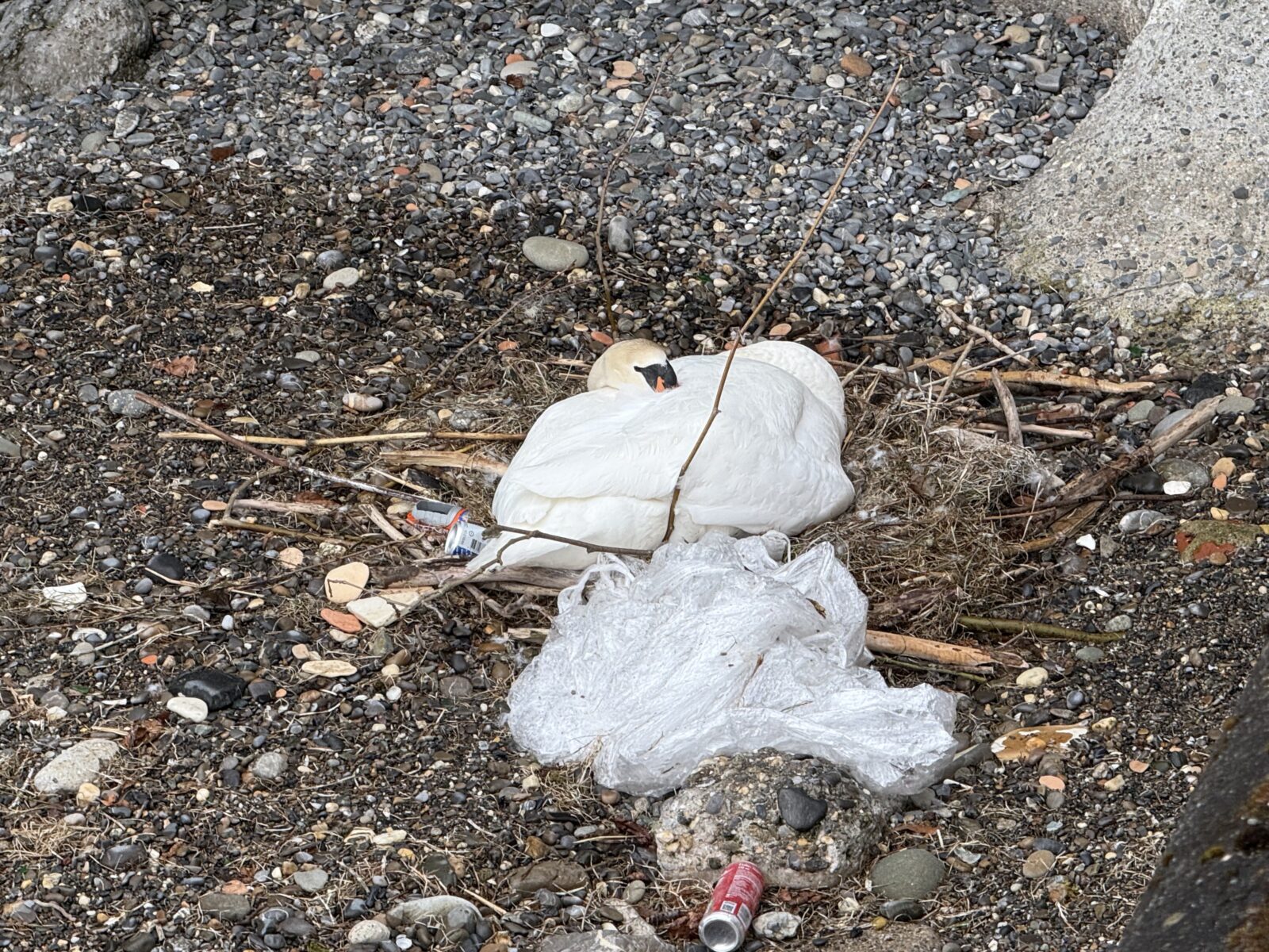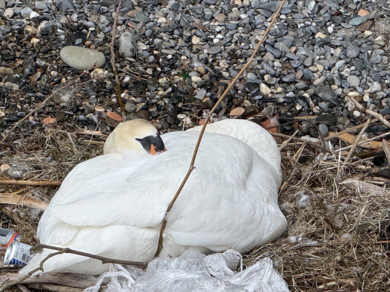 Gestern morgen zwischen Arion und ehemaliger Badhütte fotografiert. Die Frage, wieviele Eier sich im Nest beim Seerestaurant befinden, bleibt offen. Da hat sich aus der Ferne noch kein Blick ins Nestinnere ergeben. Das Stück Plastik unmittelbar neben dem Nest bleibt hoffentlich so liegen. Oder noch besser: Wird entfernt.