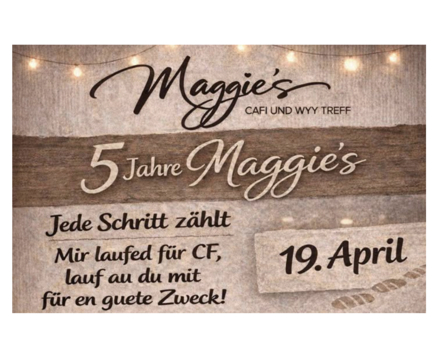 Unter dem Motto „Jeder Schritt zählt“ organisieren wir einen Charity-Anlass in Zusammenarbeit mit CF. Eine Organisation, die Familien aus unserer Region unterstützt, wenn es schwierig wird – leise, direkt und genau dort, wo Hilfe ankommt. Gerne laden wir dich von Herzen zu einem Apéro von 10.00 bis 13.00 Uhr mit Live-Musik ein.