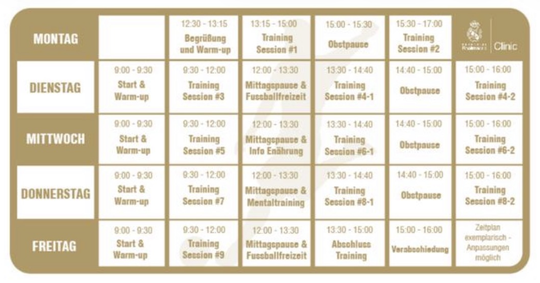 Ein bisschen Real Madrid auf den Sportanlagen KellenThemen:FC Rorschach-Goldach 17Region 15. April 2026 - 05:20Seit Montag findet auf den regionalen Sportanlagen Kellen in Tübach das „Real Madrid Trainingscamp“ statt. Hier einige Bilder, die dem Rorschacher Echo von den Organisatoren zugeschickt wurden. Herzlichen Dank. Teilen mit: Einen Link per E-Mail an einen Freund senden (Wird in neuem Fenster geöffnet) E-Mail Drucken (Wird in neuem Fenster geöffnet) Drucken Auf Facebook teilen (Wird in neuem Fenster geöffnet) Facebook Auf X teilen (Wird in neuem Fenster geöffnet) X Auf WhatsApp teilen (Wird in neuem Fenster geöffnet) WhatsApp Gefällt mir:Gefällt mir Wird geladen …Newsletter abonnieren Bitte dieses Feld leer lassenBitte wähle, ob Du über jeden neuen Beitrag sofort oder lieber jeden Morgen gegen 9 Uhr eine Zusammenfassung der neusten Beiträge erhalten möchtest.Liste(n) auswählen: Neues vom Echo (Zusammenfassung) Neues vom Echo (Sofortbenachrichtigung) Dieses Feld wird benötigt.Prüfen Sie Ihren Posteingang und den Spamordner, um Ihr Abonnement zu bestätigen.