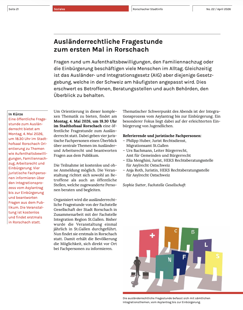 Den Artikel „Ausländerrechtliche Fragestunde zum ersten Mal in Rorschach“ findet man in den soeben verteilten Rorschacher Stadtinfos auf Seite 21. Und online hier.