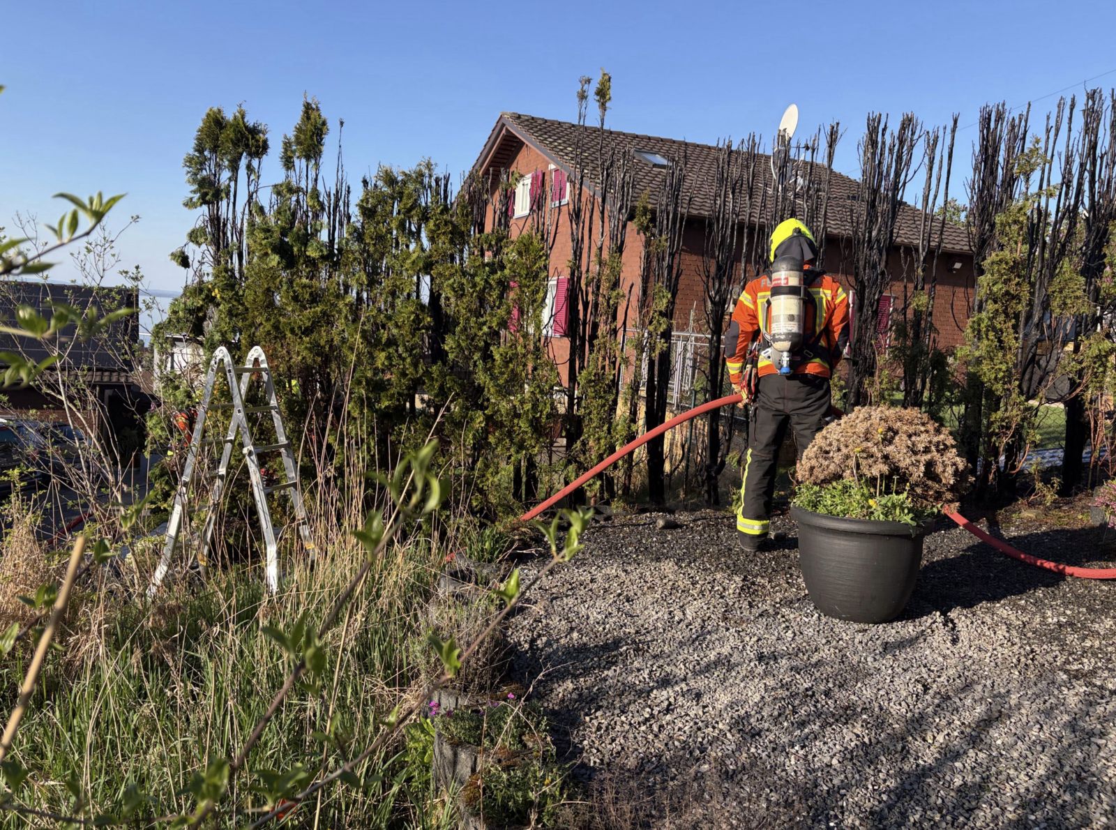Gestern Freitagabend (17.04.2026) ist eine Hecke in Brand geraten. Die Feuerwehr war rasch vor Ort und konnte die Flammen löschen. Es entstand Sachschaden.