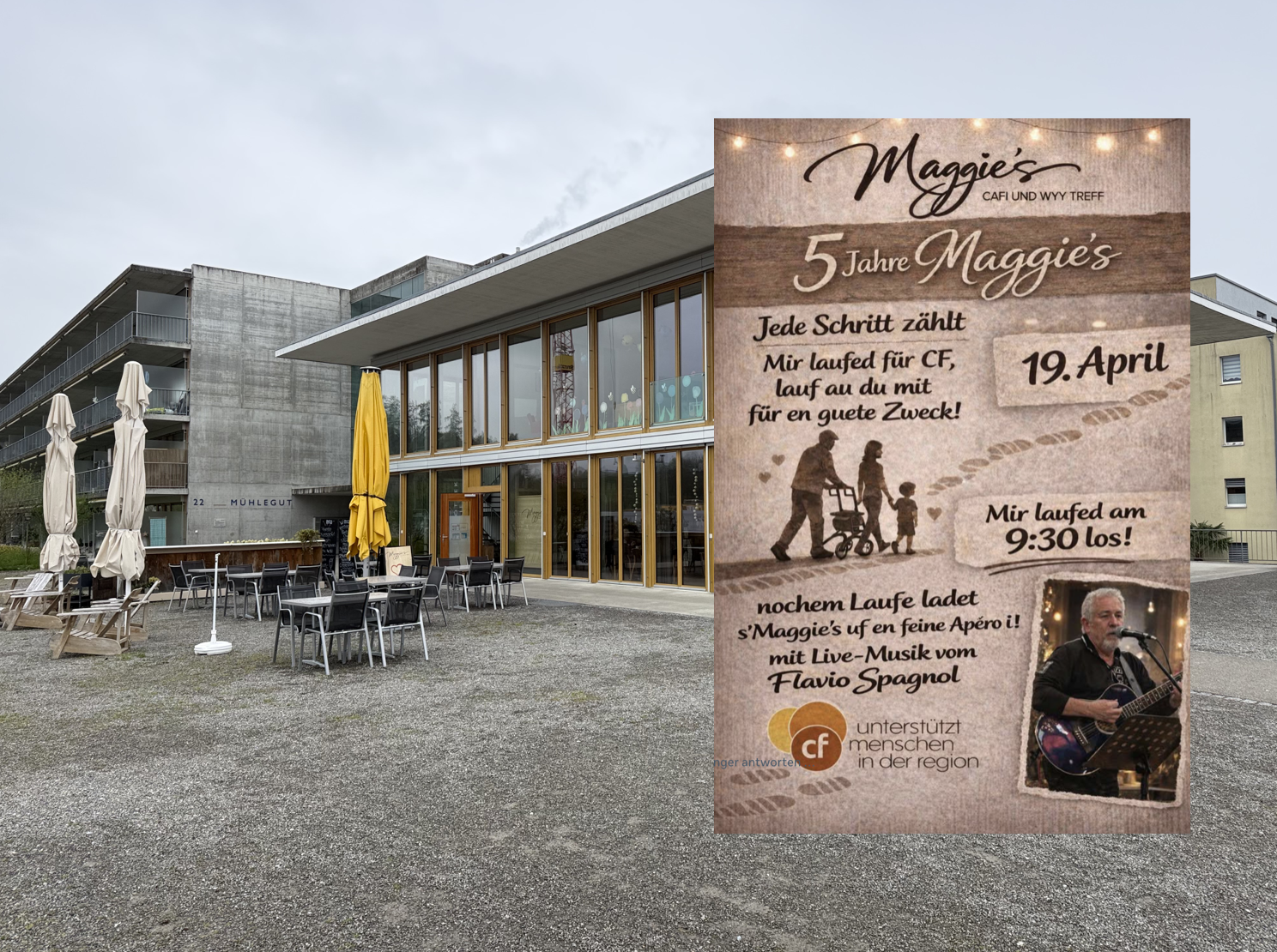 Maggie’s Cafi und Wy Treff in Goldach feiert heute Sonntag das 5 Jahre-Jubiläum und organisiert einen Lauf für einen guten Zweck. Unterstützt wird der CF Rorschach. Ab 09.30 Uhr geht’s beim Mühlegut.