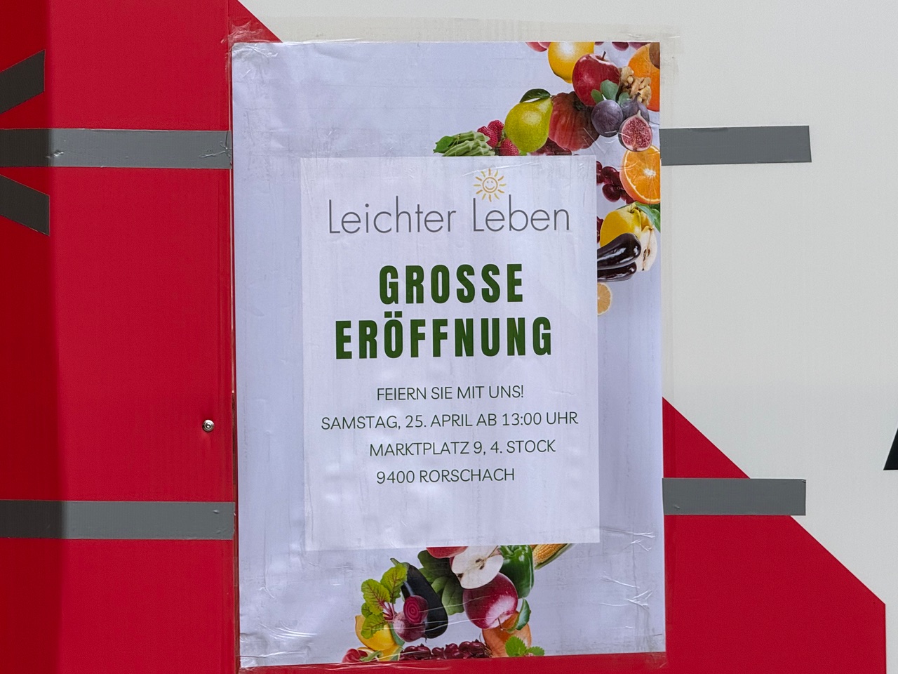 Das Rorschacher Gewerbe bleibt in BewegungThemen:Rorschach 22. April 2026 - 05:10Kommenden Samstag lädt „Leichter Leben“ zur Eröffnung an den Marktplatz 9 im 4. Stock. Mehr Infos dazu findet man hier.Teilen mit: Einen Link per E-Mail an einen Freund senden (Wird in neuem Fenster geöffnet) E-Mail Drucken (Wird in neuem Fenster geöffnet) Drucken Auf Facebook teilen (Wird in neuem Fenster geöffnet) Facebook Auf X teilen (Wird in neuem Fenster geöffnet) X Auf WhatsApp teilen (Wird in neuem Fenster geöffnet) WhatsApp Gefällt mir:Gefällt mir Wird geladen …Newsletter abonnieren Bitte dieses Feld leer lassenBitte wähle, ob Du über jeden neuen Beitrag sofort oder lieber jeden Morgen gegen 9 Uhr eine Zusammenfassung der neusten Beiträge erhalten möchtest.Liste(n) auswählen: Neues vom Echo (Zusammenfassung) Neues vom Echo (Sofortbenachrichtigung) Dieses Feld wird benötigt.Prüfen Sie Ihren Posteingang und den Spamordner, um Ihr Abonnement zu bestätigen.