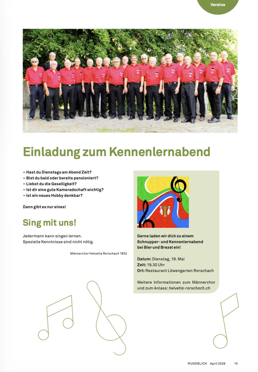 In Rorschacherberg wird der neue Rundblick verteiltThemen:Rorschacherberg 24. April 2026 - 10:01Ab heute in den vielen Briefkästen der Gemeinde und demnächst online auch hier. Teilen mit: Einen Link per E-Mail an einen Freund senden (Wird in neuem Fenster geöffnet) E-Mail Drucken (Wird in neuem Fenster geöffnet) Drucken Auf Facebook teilen (Wird in neuem Fenster geöffnet) Facebook Auf X teilen (Wird in neuem Fenster geöffnet) X Auf WhatsApp teilen (Wird in neuem Fenster geöffnet) WhatsApp Gefällt mir:Gefällt mir Wird geladen …Newsletter abonnieren Bitte dieses Feld leer lassenBitte wähle, ob Du über jeden neuen Beitrag sofort oder lieber jeden Morgen gegen 9 Uhr eine Zusammenfassung der neusten Beiträge erhalten möchtest.Liste(n) auswählen: Neues vom Echo (Zusammenfassung) Neues vom Echo (Sofortbenachrichtigung) Dieses Feld wird benötigt.Prüfen Sie Ihren Posteingang und den Spamordner, um Ihr Abonnement zu bestätigen.