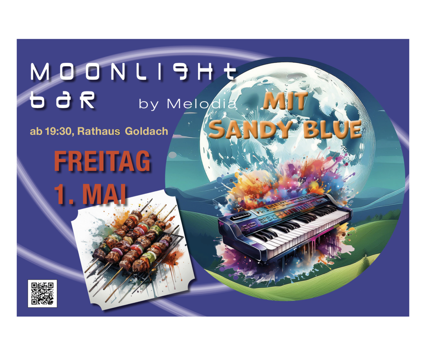 Neben dem Grill-Duft liegt auch Musik in der Luft. Sandy Blue präsentiert auf seinem Keyboard Hits, Evergreens und Oldies. Der Goldacher deckt mit seinen selbst eingespielten Arrangements die verschiedensten Musikstiele ab und bietet eine grosse Vielfalt von Klängen. Viel Spass!