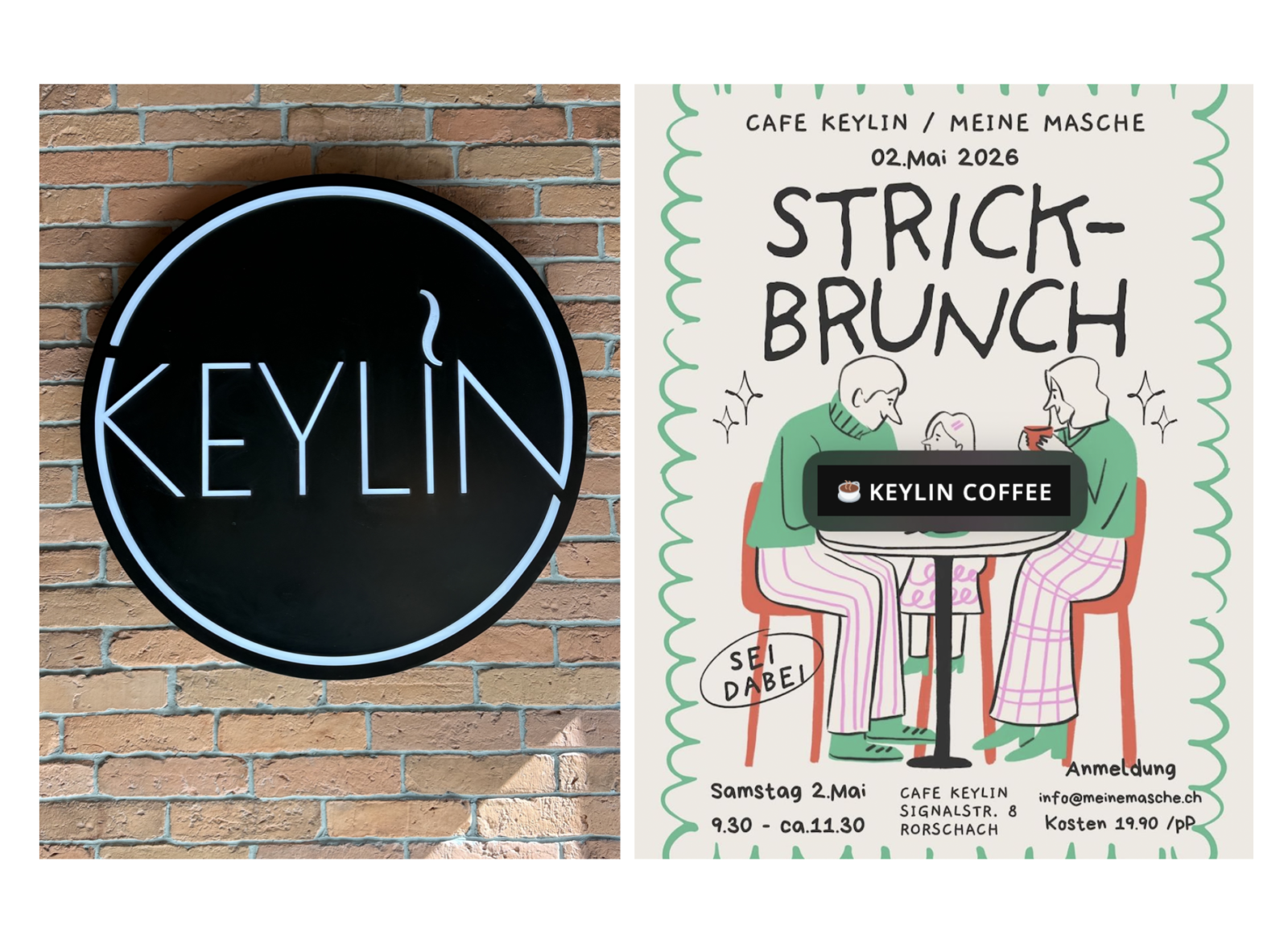 Im Cafe Keylin an der Signalstrasse 8 wird kommenden Samstag nicht nur gebruncht sondern auch gestrickt. Organisiert wird der Anlass von „Meine Masche„. Infos findet man auf dem Flyer unten.