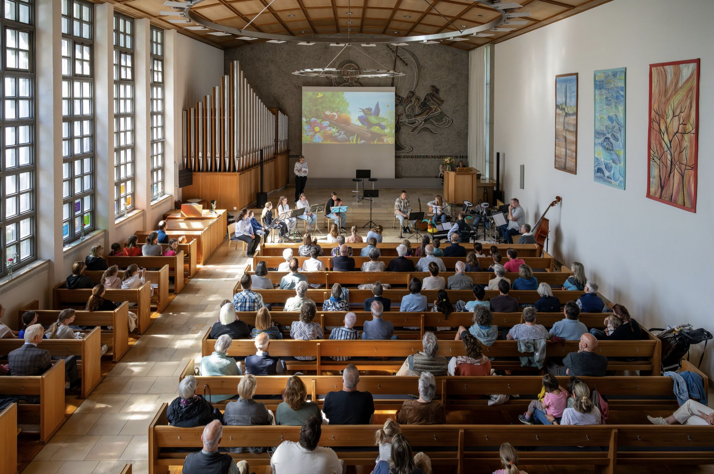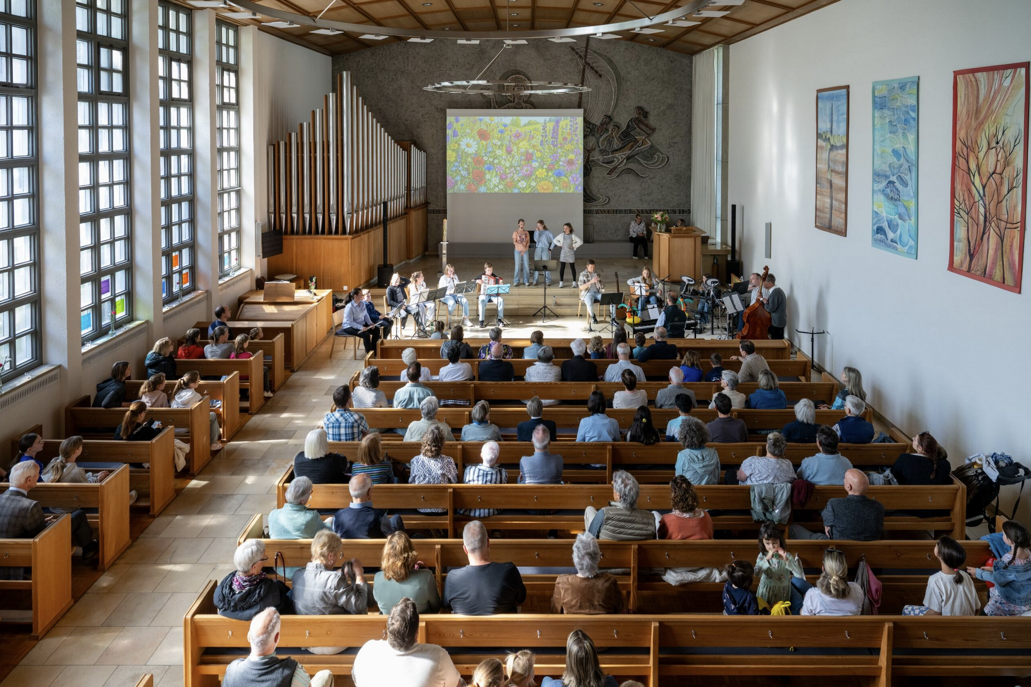 Eröffnet wurde der Tag mit einem musikalischen Familiengottesdienst. Die Kinder-Eltern-Band unter der Leitung von Andreas Korsch begleitete die Feier. Pfarrerin Sabine Rheindorf sprach über Vielfalt und Gemeinschaft – passend dazu wurde die Kirchgemeinde mit einer bunten Blumenwiese verglichen, auf der Unterschiedlichkeit zum Reichtum wird. Für einen schwungvollen Abschluss sorgte die Tanzgruppe Roundabout Youth Goldach unter der Leitung von Lara Ackermann.