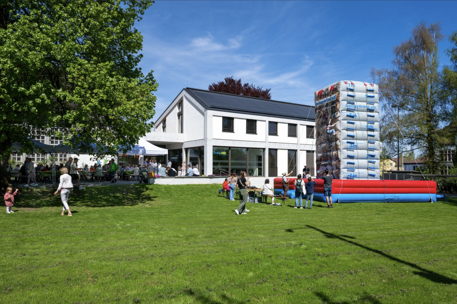 Bei bestem Wetter zog es zahlreiche Besucherinnen und Besucher auf das Festgelände. Die neue Terrasse auf der Westseite lud zum Verweilen ein, während Kinder den grossen Sandspielbereich eroberten. Auf der Wiese sorgten ein Kletterturm und eine Hüpfburg für viel Bewegung und Spass.