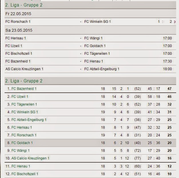 … und die damit zusammenhängende Rangliste. Da haben sich noch einige Überraschungen ergeben. Der FC Rorschach hat am nächsten Samstag beim FC Wängi anzutreten. Spielbeginn ist dann um 18 Uhr.