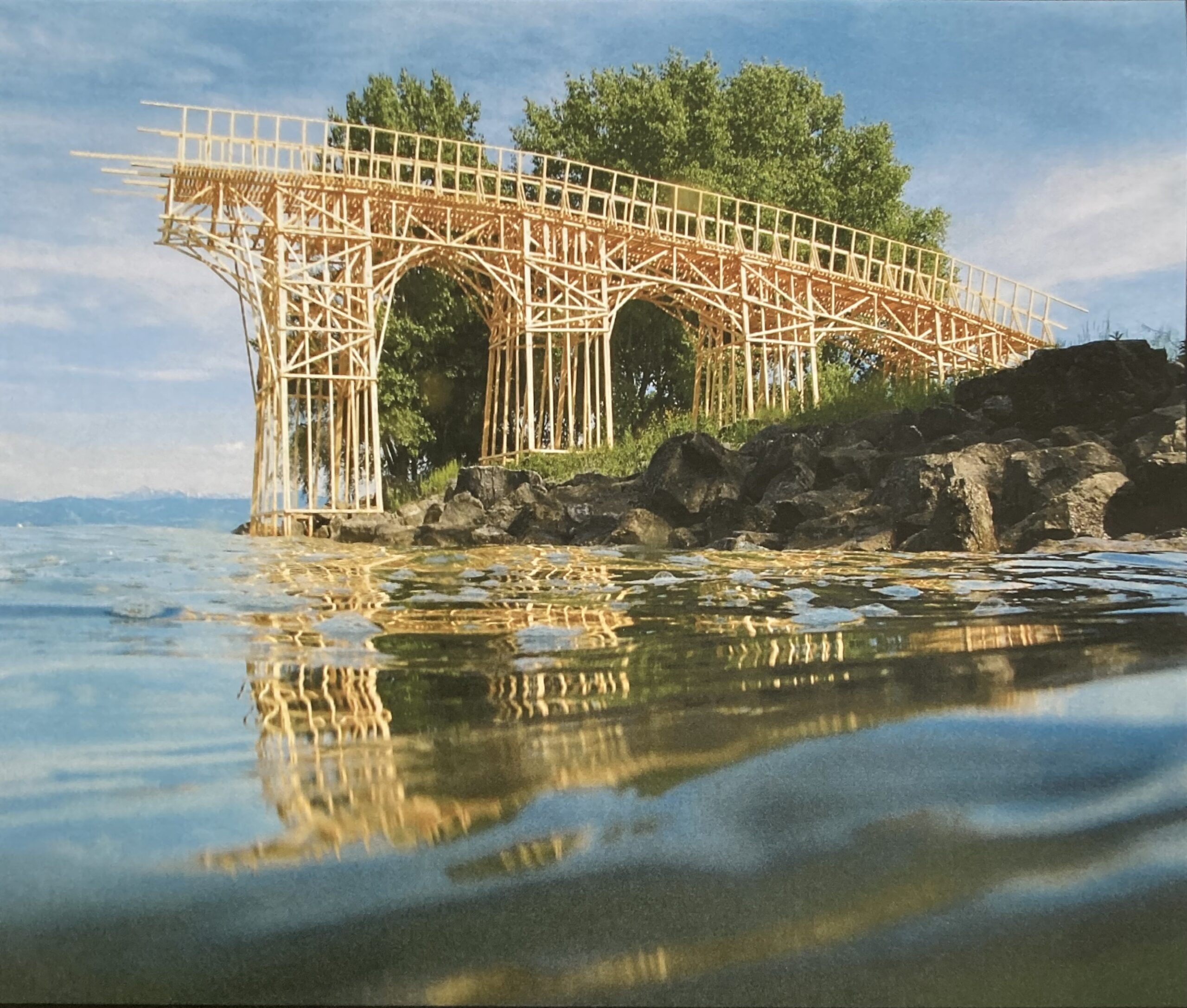 Bei den «billboards am see» reduziert sich diese raumgreifende Wucht auf die Fläche. Die Fotografien von fünf Projekten des Duos fungieren als visuelles Surrogat: Sie dokumentieren die ursprüngliche Provokation und lassen ihr Echo am Bodenseeufer nachhallen. Auf den Billboards leben die Grossplastiken, eingebettet in ihre originale Landschaft, in einem veränderten Kontext nochmals im öffentlichen Raum auf. (Bild: pd kfr)